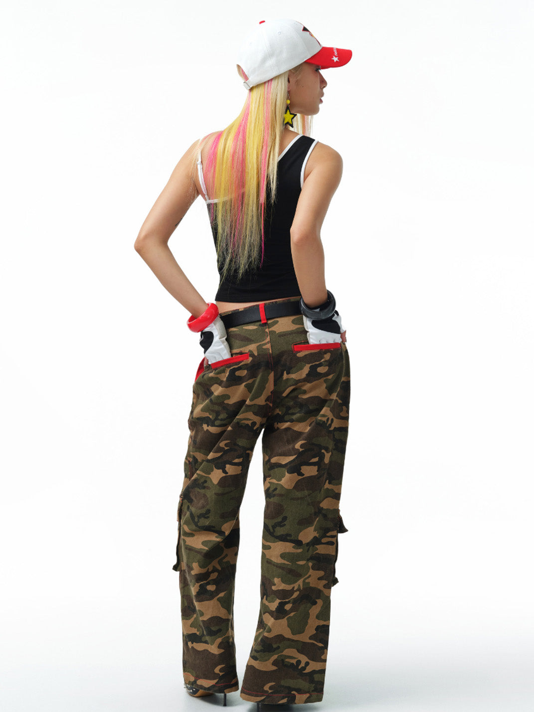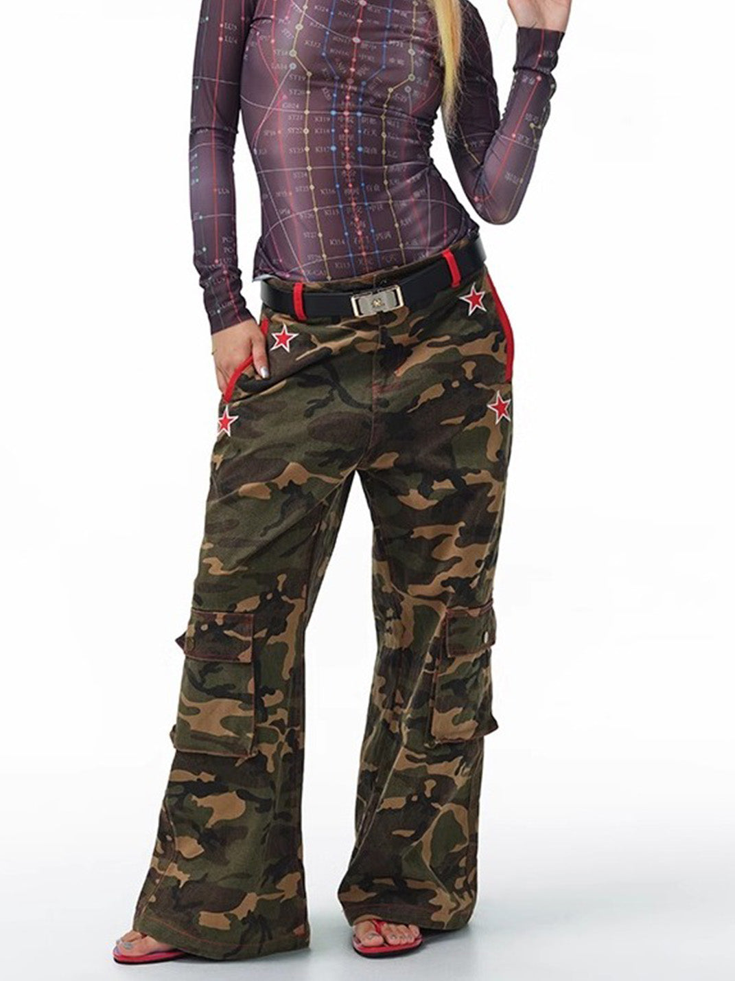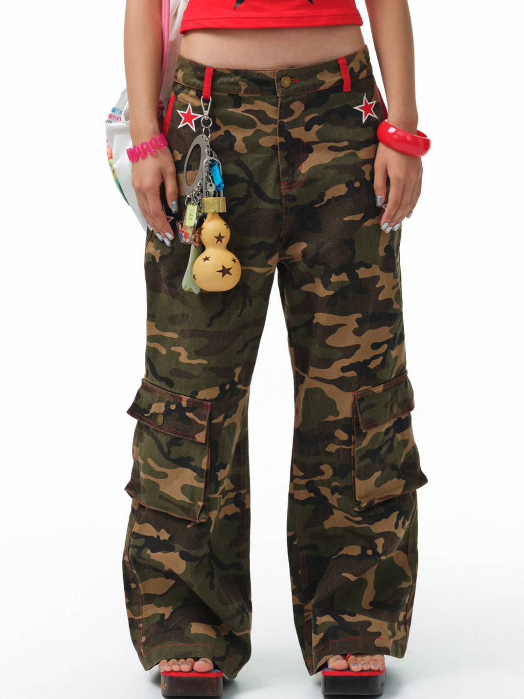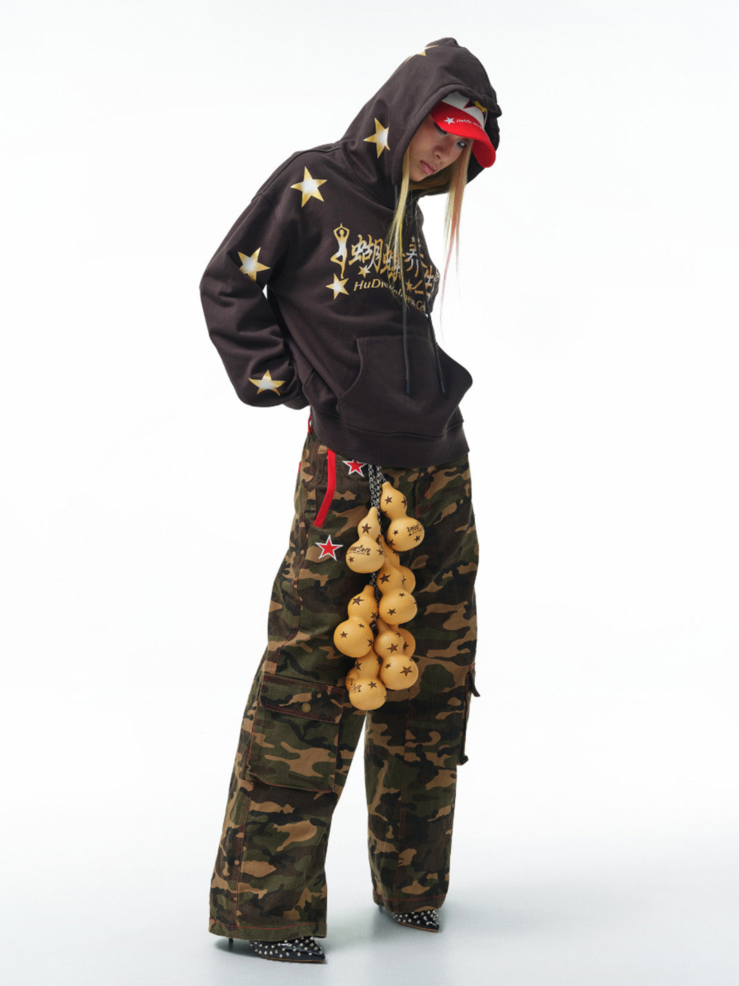 Made from heavy-weight pure cotton camo denim, perfect for all seasons; features star embroidery and double-stitch detailing at the seams for extra style points.