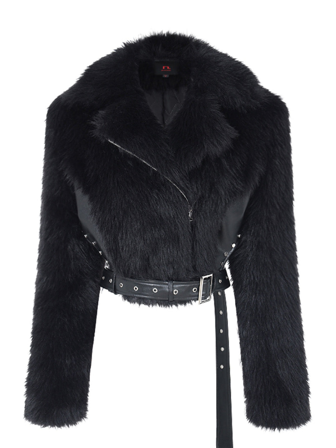 · Ultra-thick shearling collar adds a cozy winter vibe