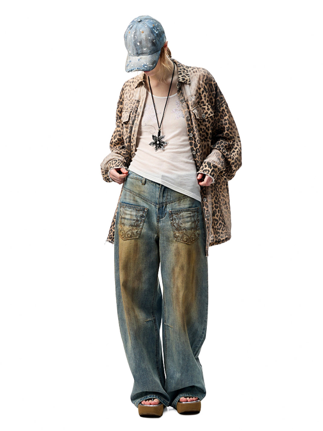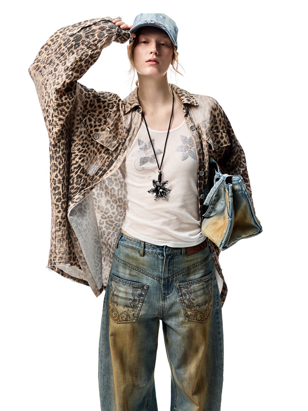 1 JINN STUDIO | Distressed Leopard Oversize Shirt Skip to content