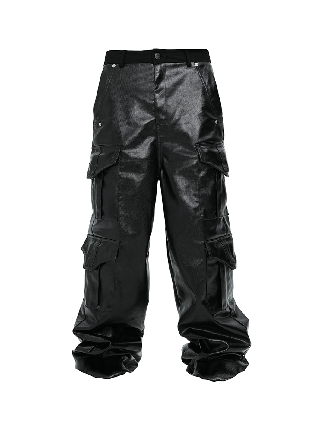 Featuring a sleek glossy coating, these pants combine modern style with functional design. Hidden snap closures maintain a clean, streamlined front, while a custom leather-and-rubber brand patch adds a distinctive finishing touch. Tailored in the signature GMKCRAGO fit, they offer a contemporary silhouette with a subtle utilitarian edge.