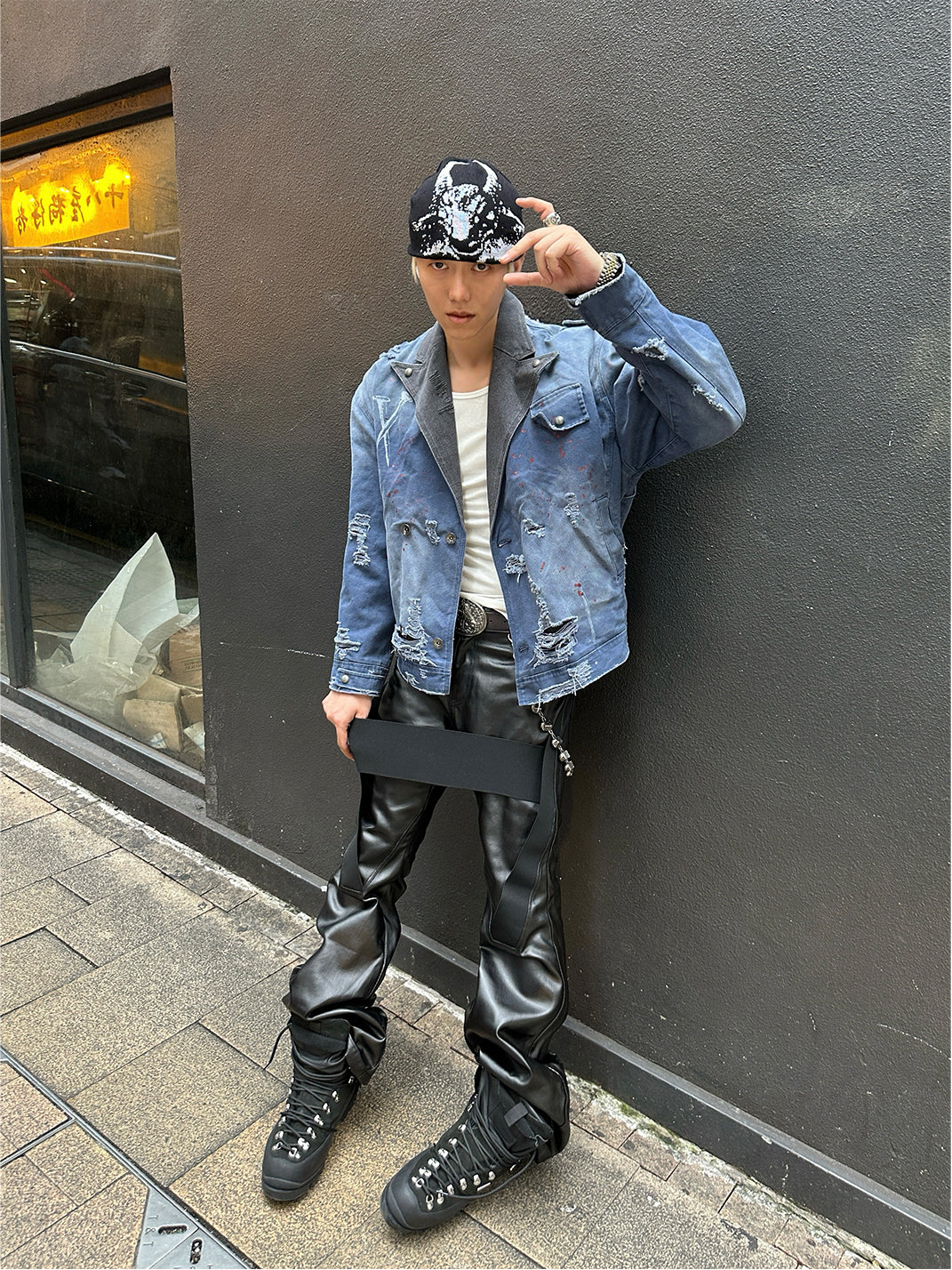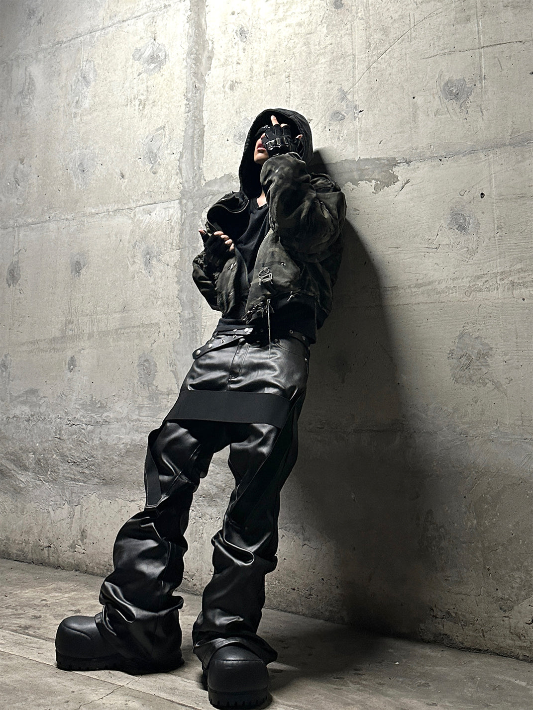 Fabric: 13 oz pure-cotton denim with a PU coating, creating a deep black finish that shifts in texture and tone from different angles