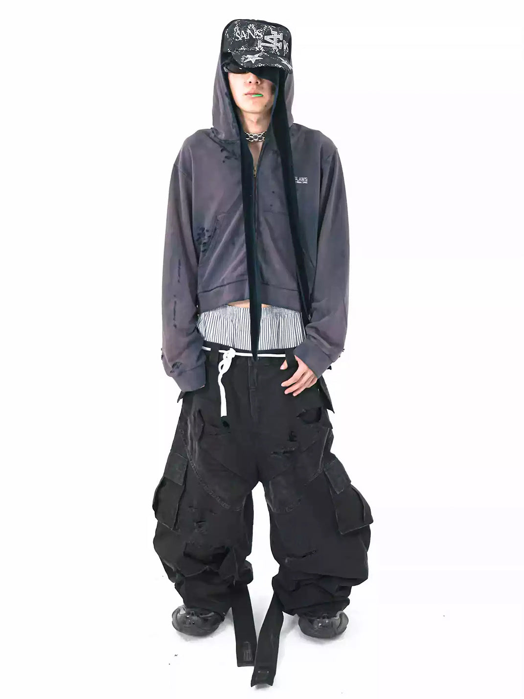 SANSLAWS丨Distressed Baggy Cargo Pants Skip to content