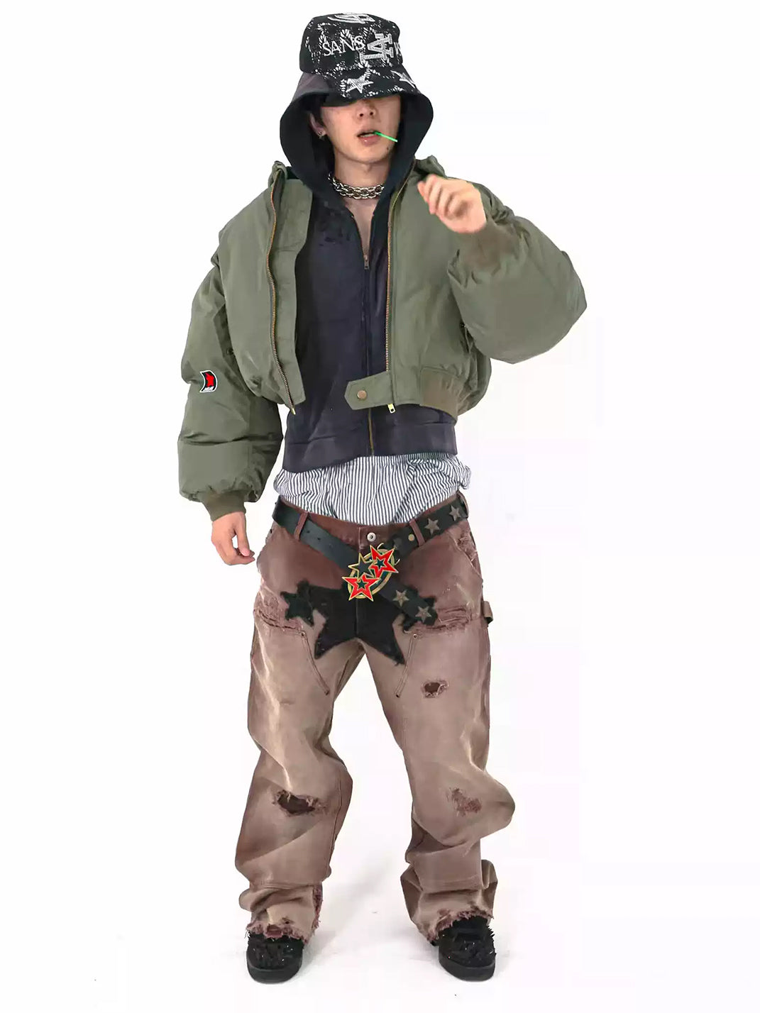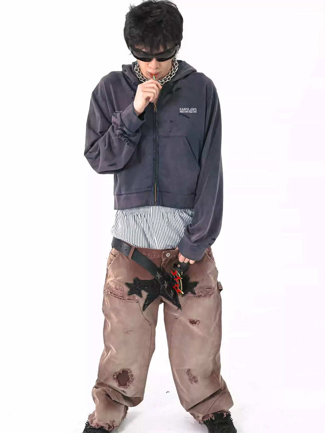 SANSLAWS丨Distressed Star Patching Jeans Skip to content