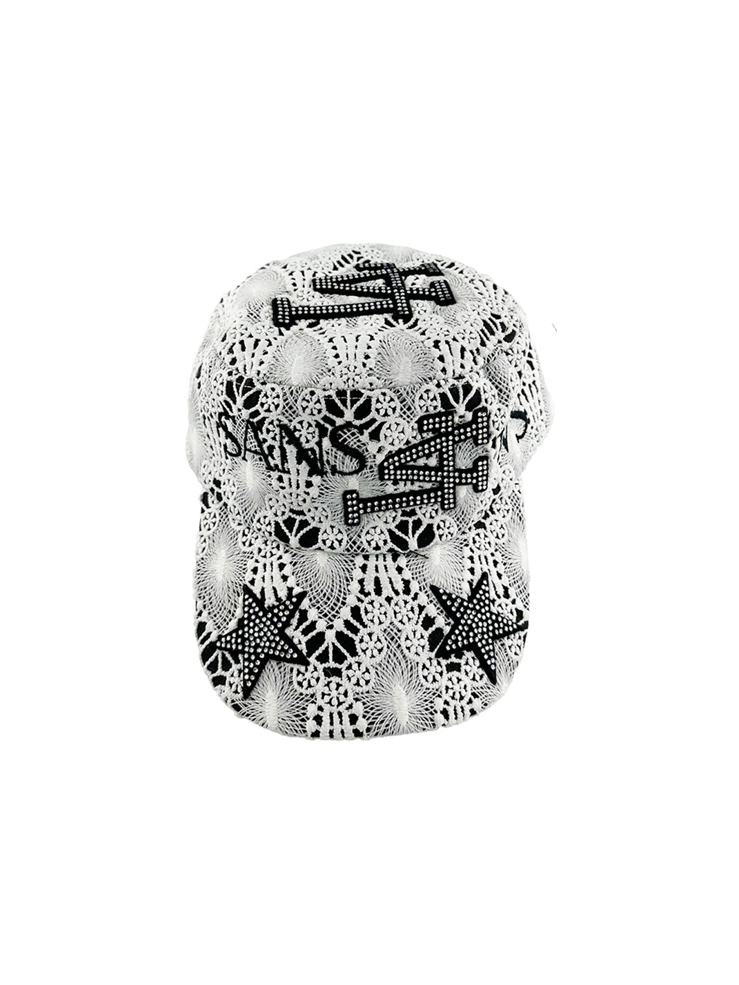 SANSLAWS丨Embroidered Rhinestone Flat Top Cap - White