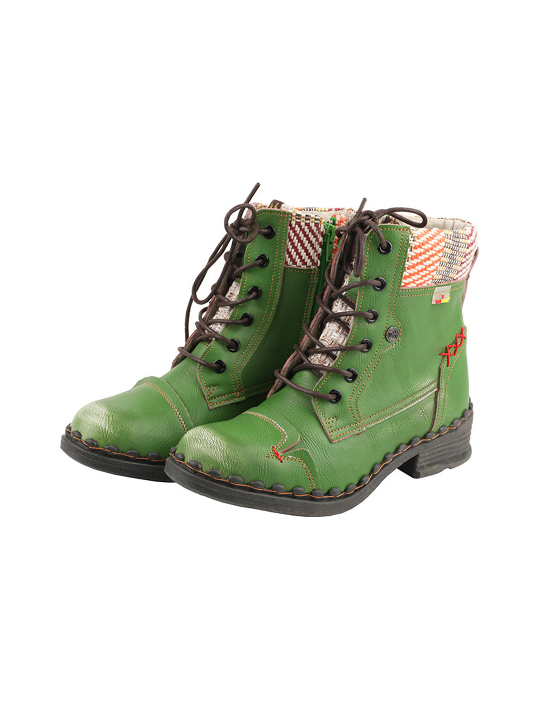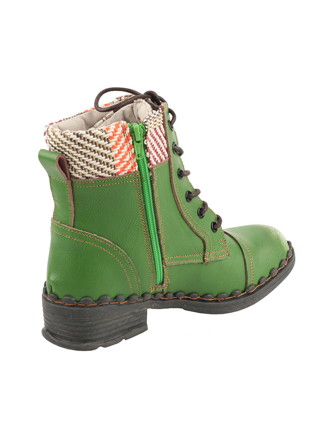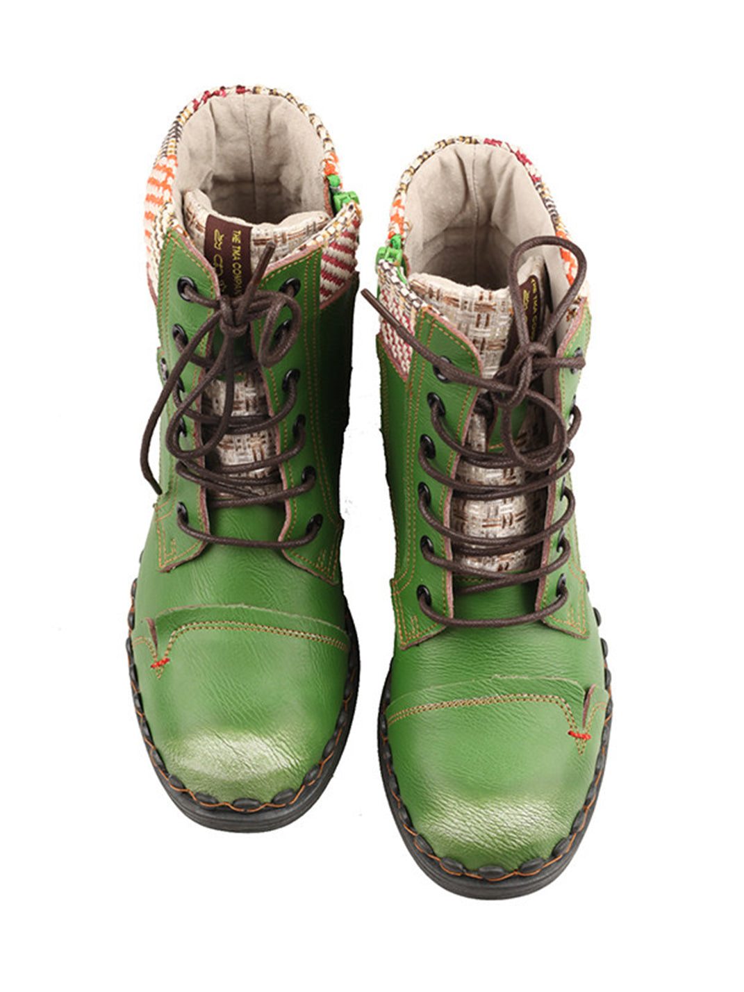 TMA EYES | Hand-Stitched Woven Lace-Up Boots-Green Skip to content