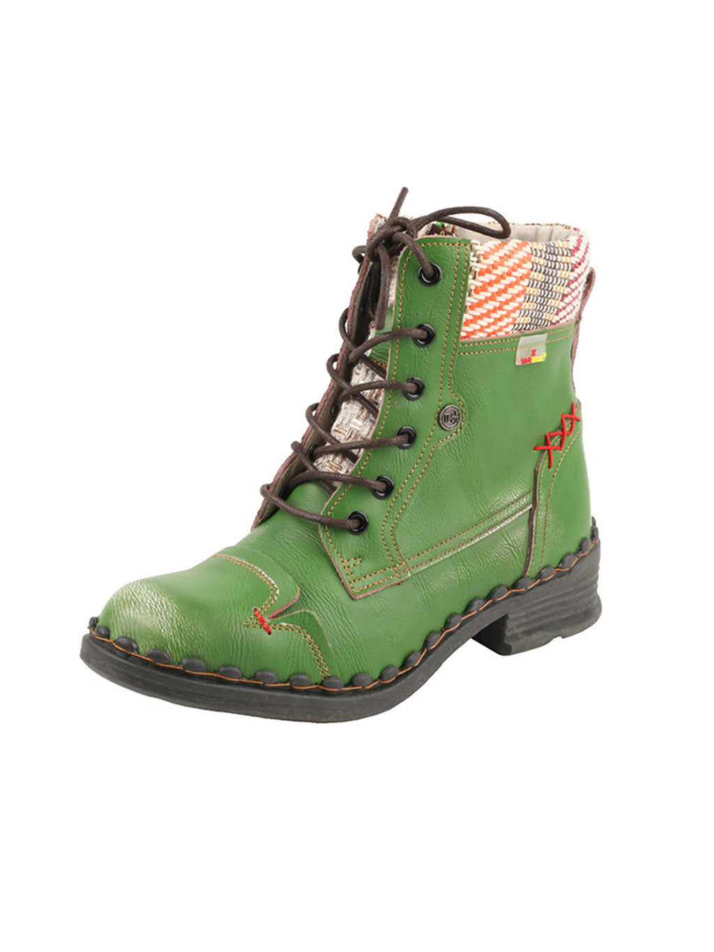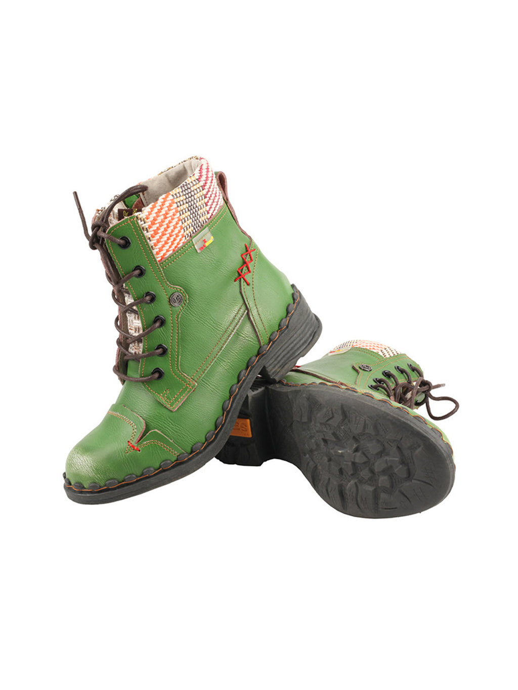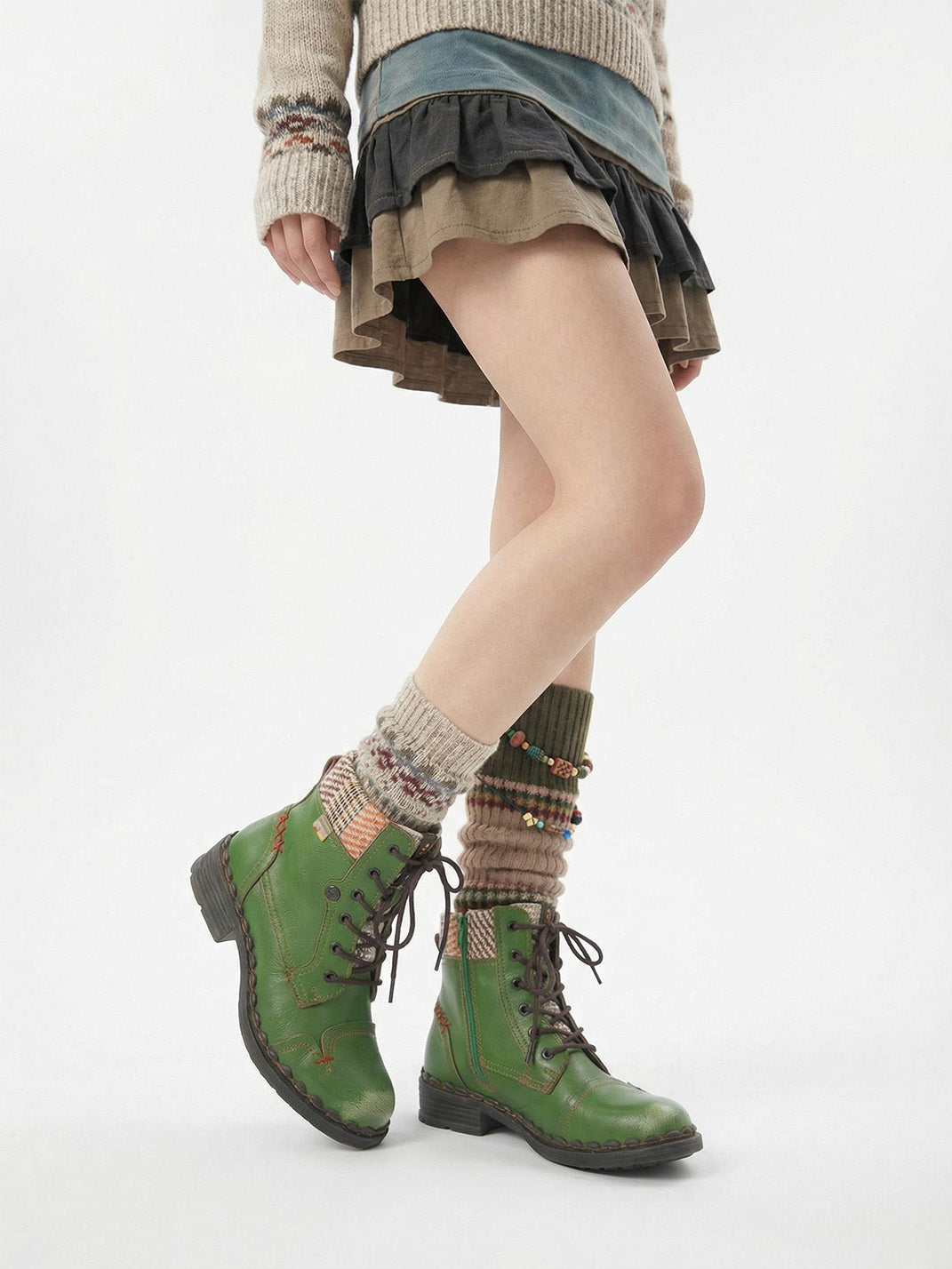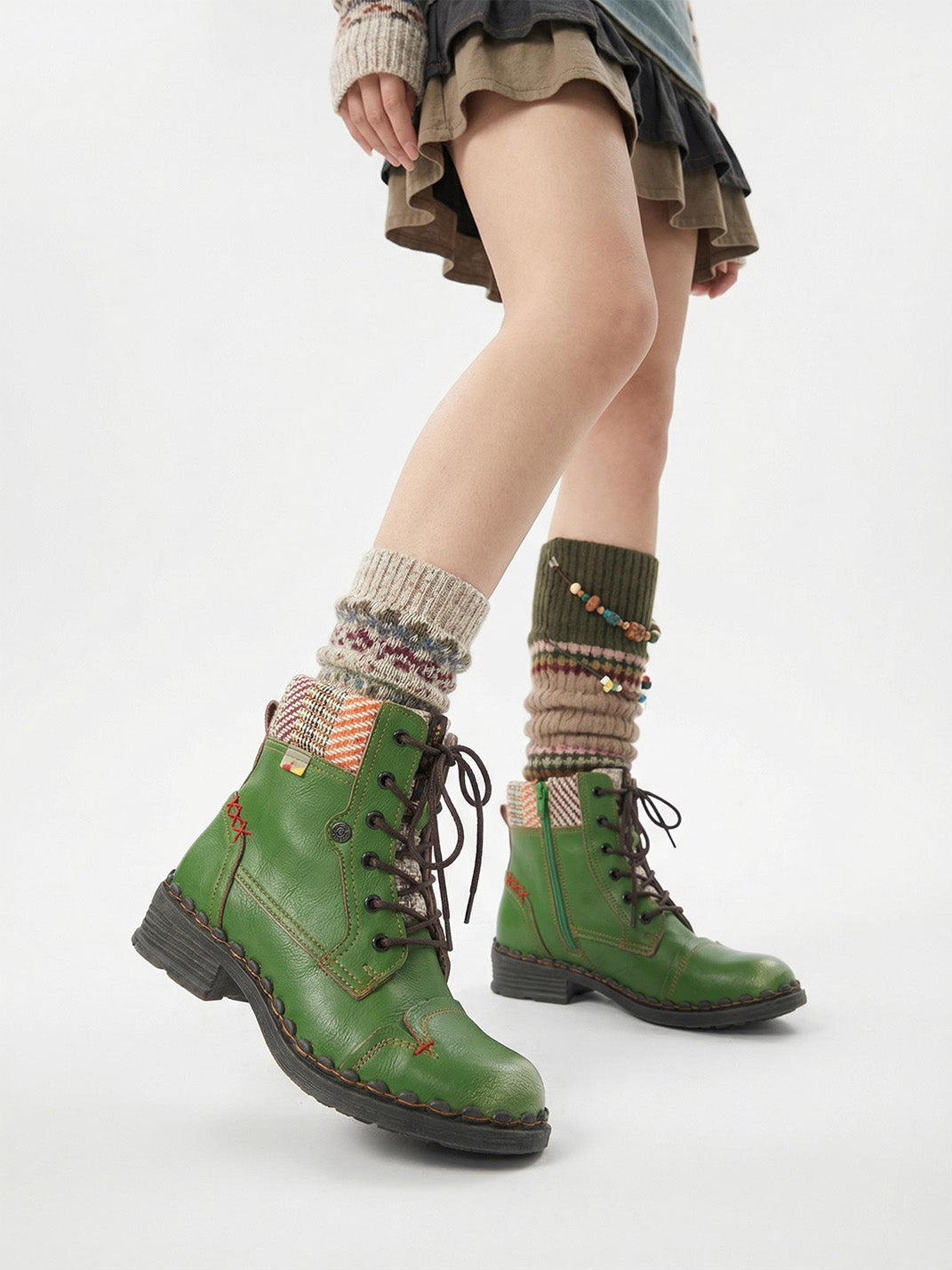 TMA EYES | Hand-Stitched Woven Lace-Up Boots-Green Skip to content