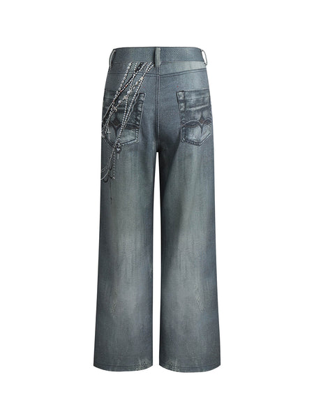 DND4DES丨All-Over Pearl Chain Denim Jeans