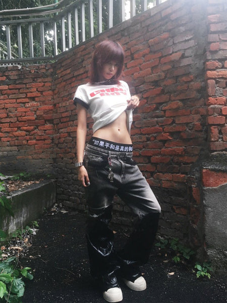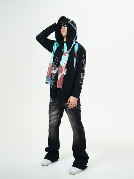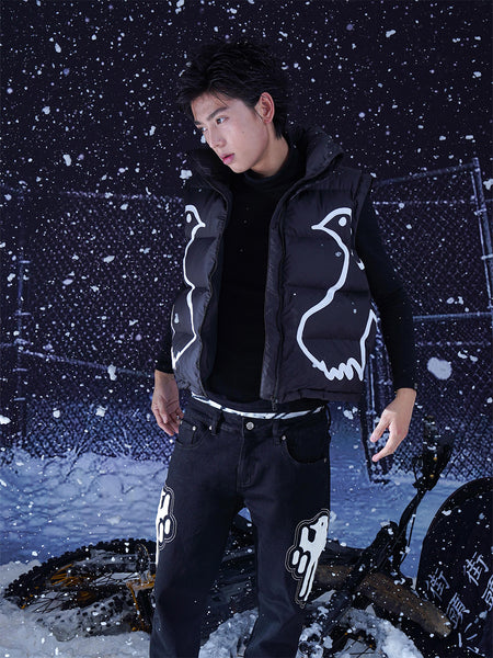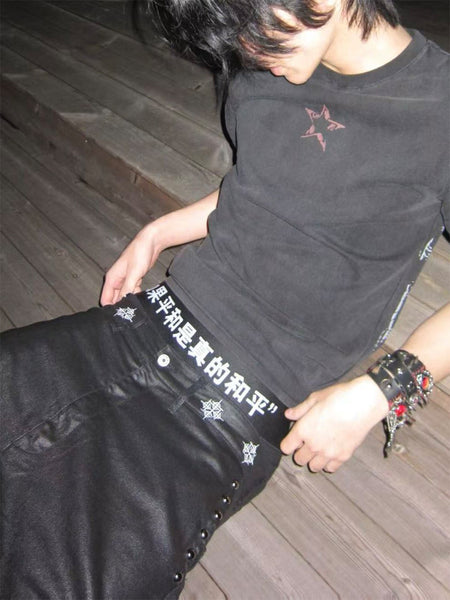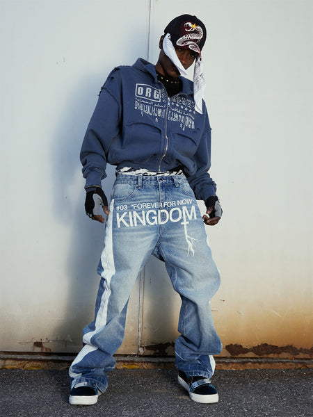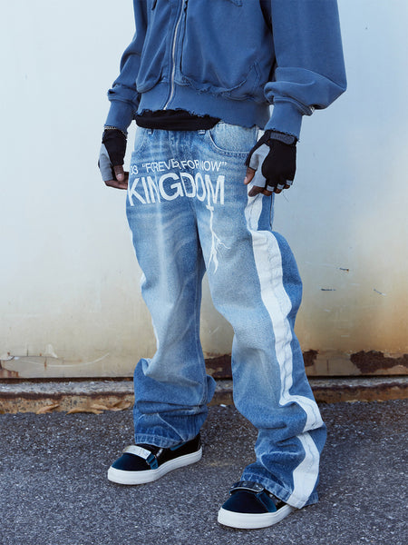 VINKID | Street Kanji Graphic Panel Raw Jeans