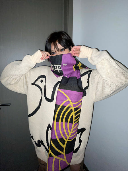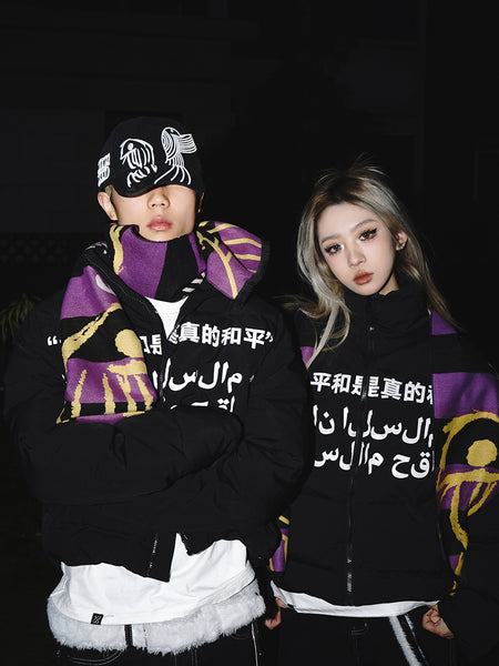 VINKID | Double-Sided Scarf With Peace Dove Slogan