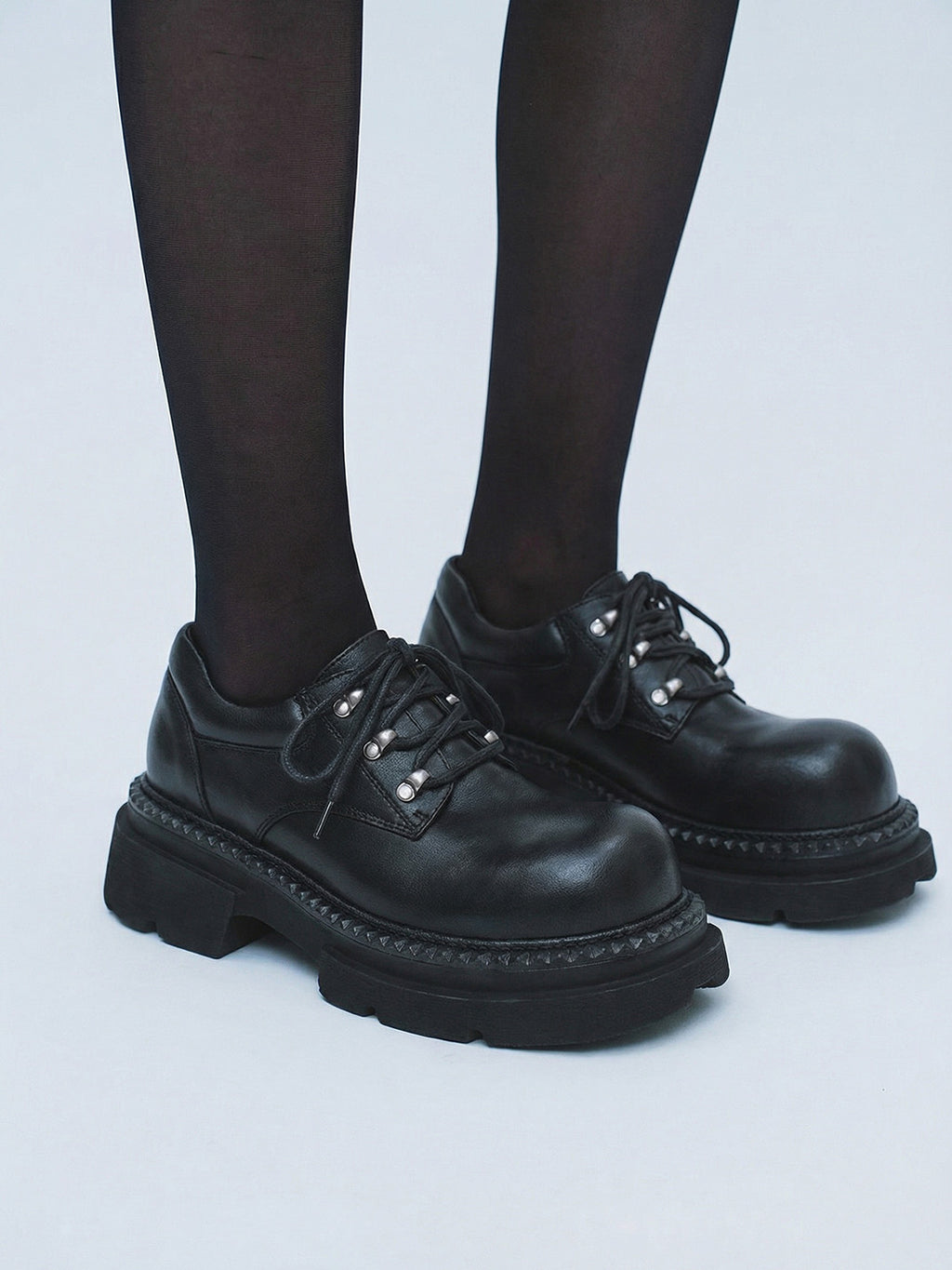 PINJIAHUI | Lace-up Leather Derby Shoes