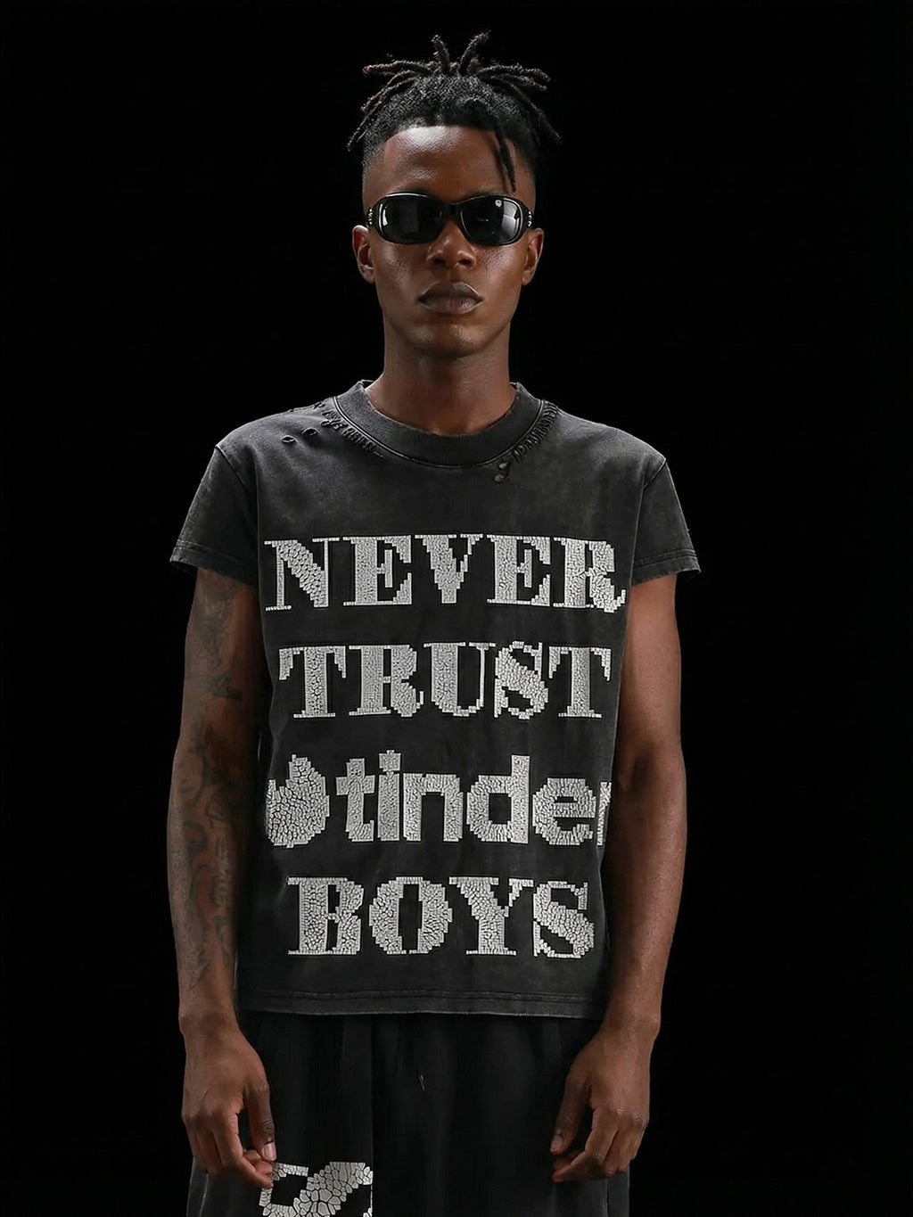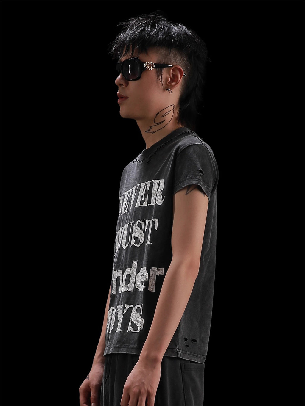 99CLUB | Heavyweight Washed Distressed Cracked Print T-Shirt
