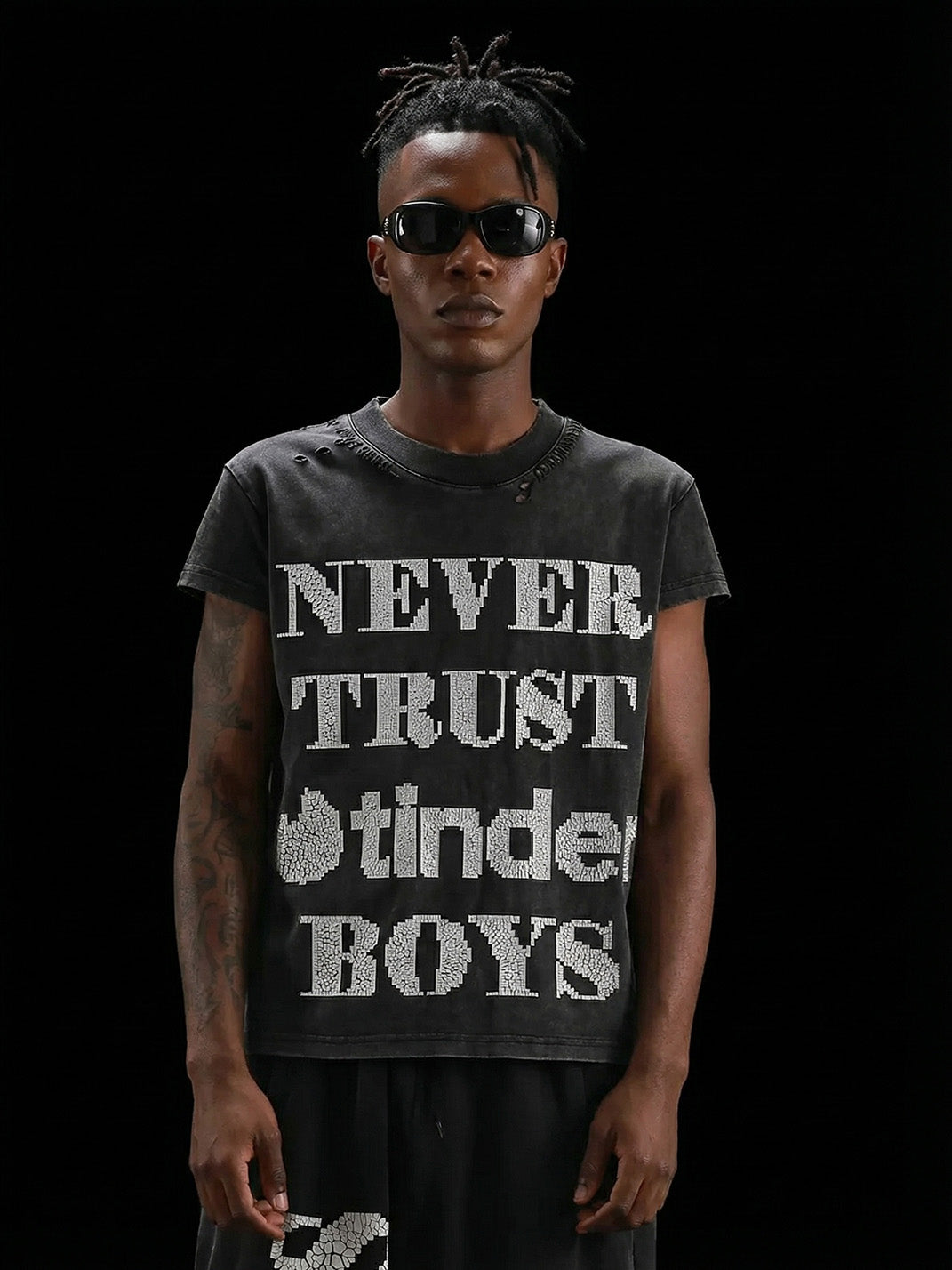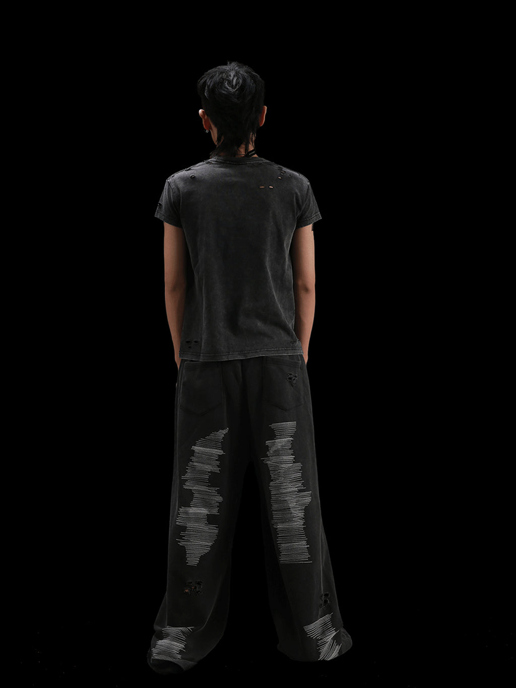 99CLUB | Heavyweight Washed Distressed Cracked Print T-Shirt Skip to content