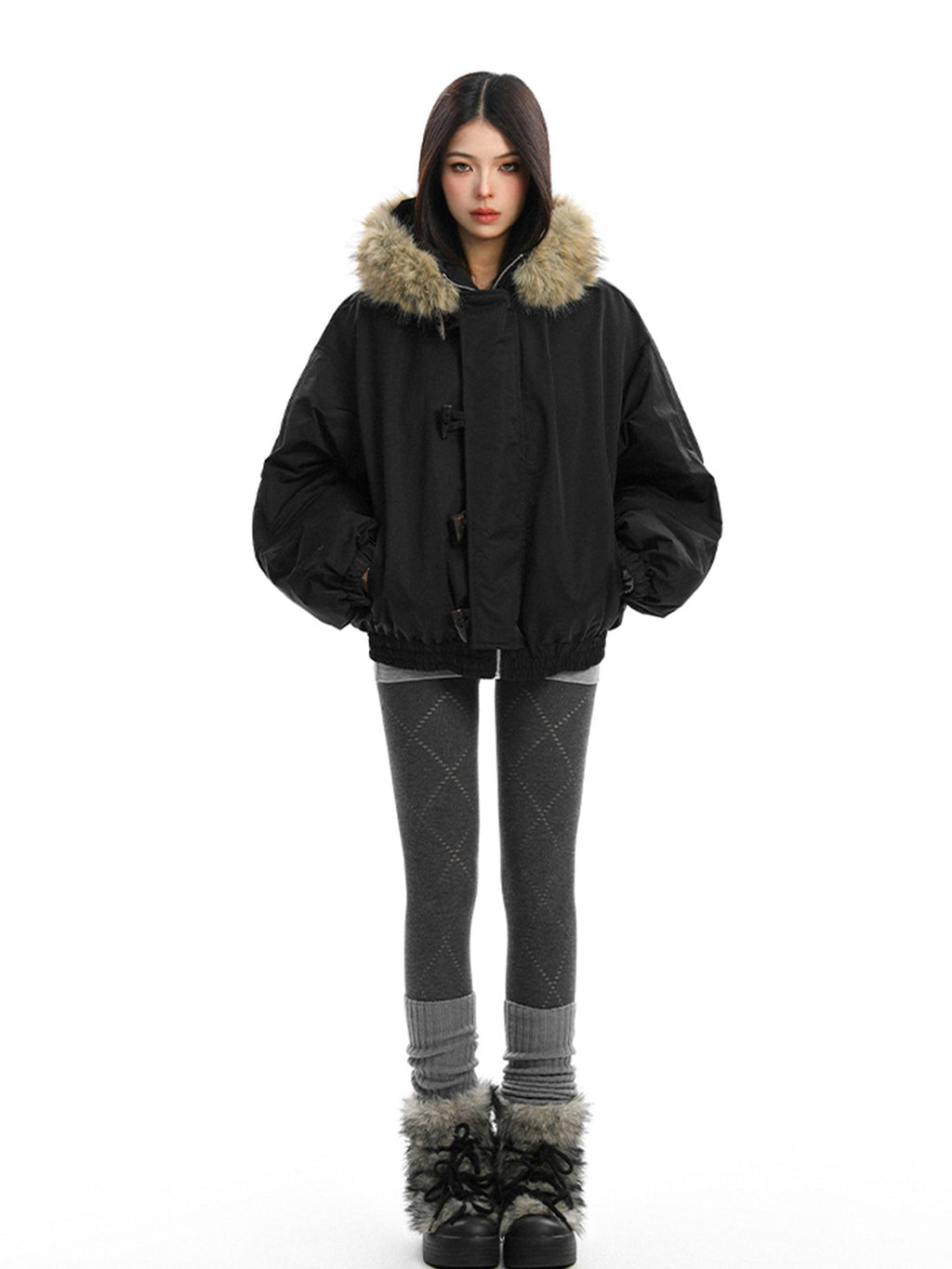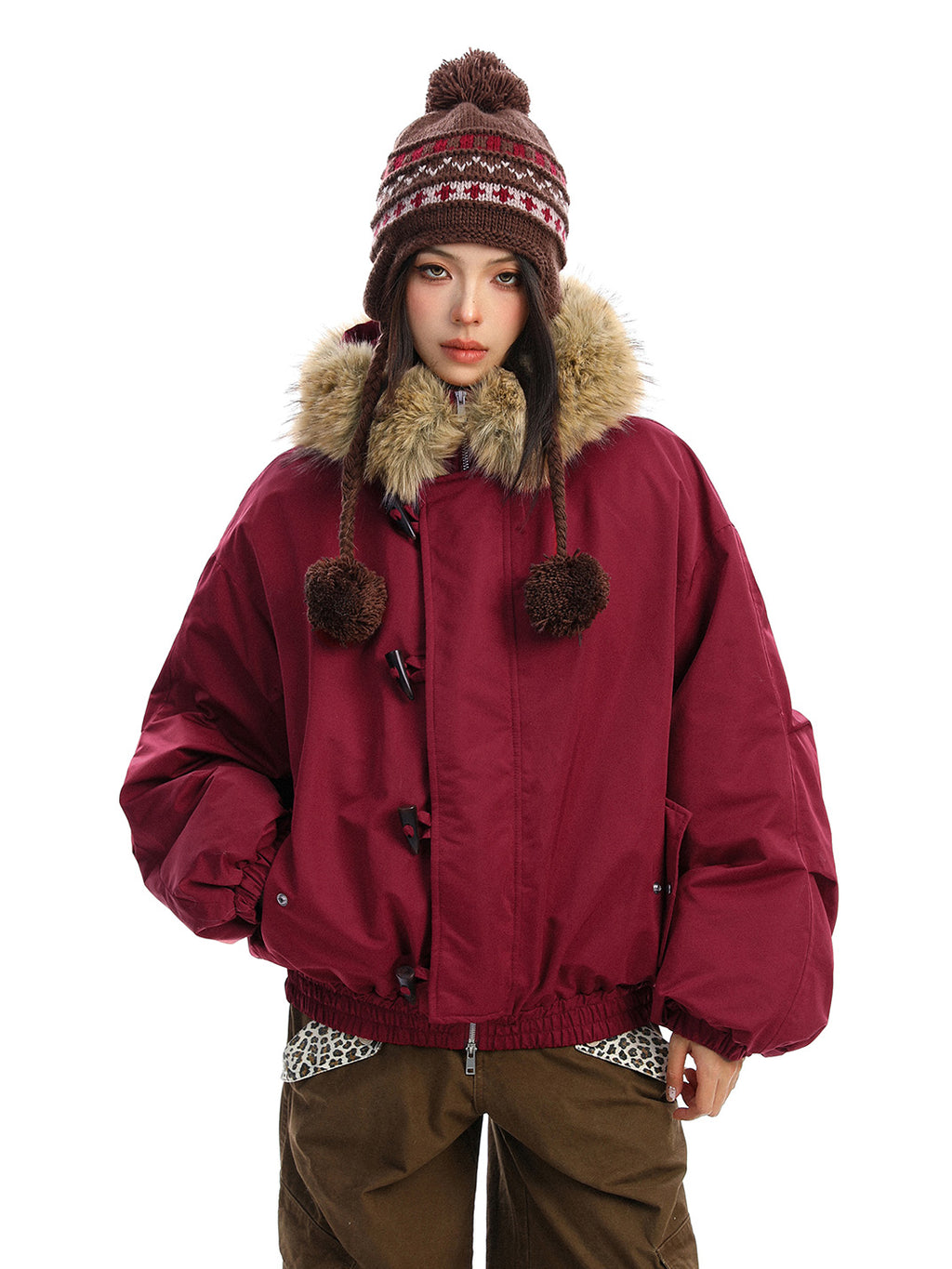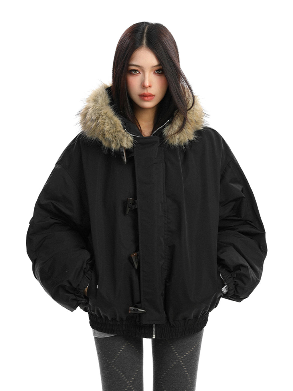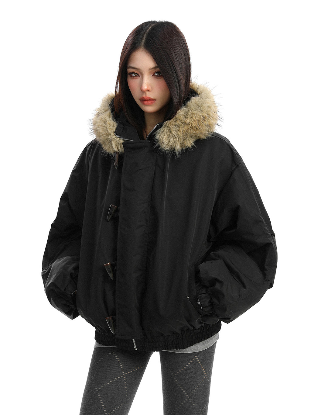 BIGGOLD | Oversized Fur-Trim Hooded Puffer Jacket Skip to content