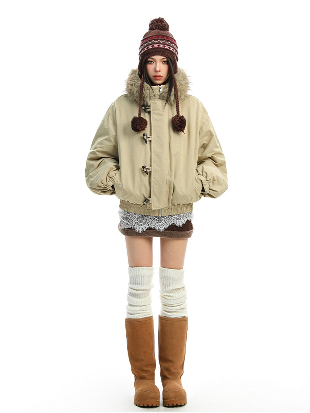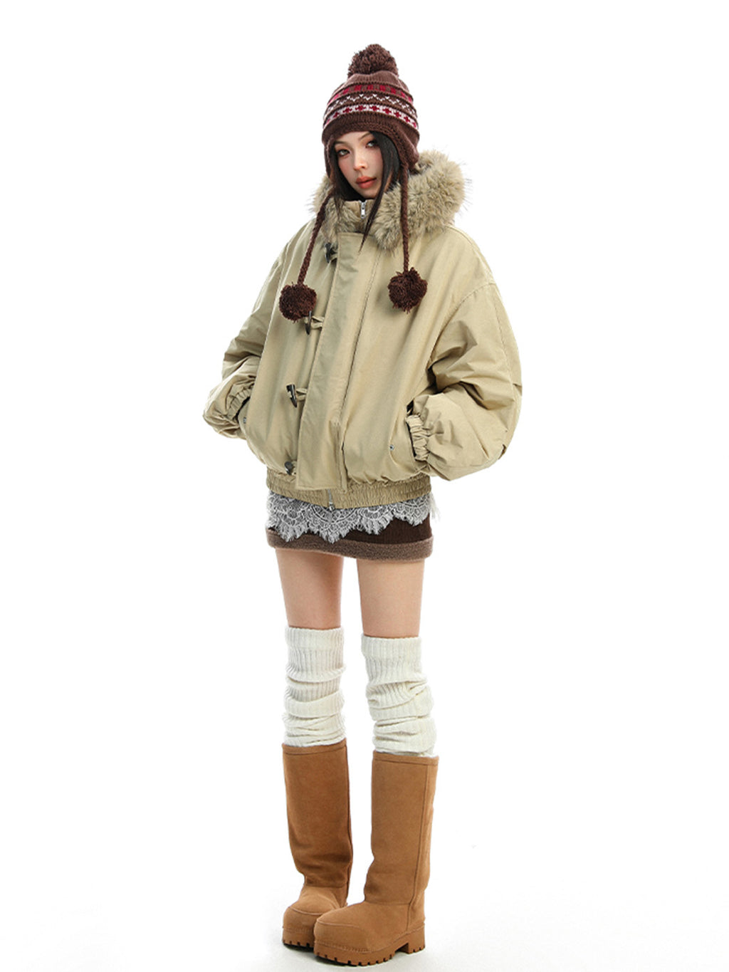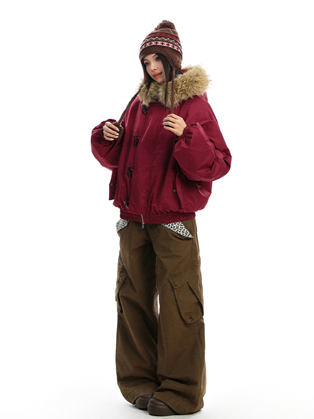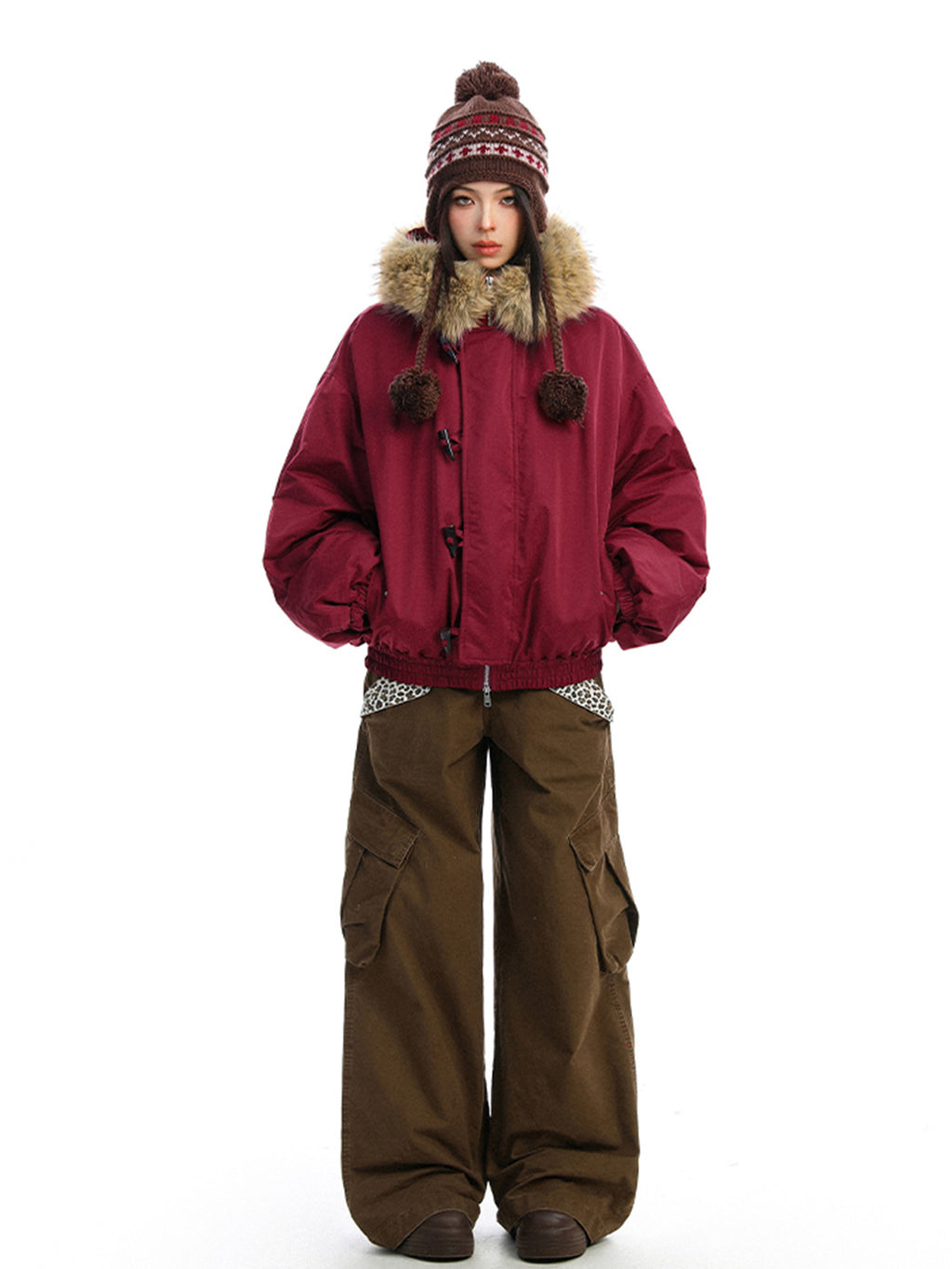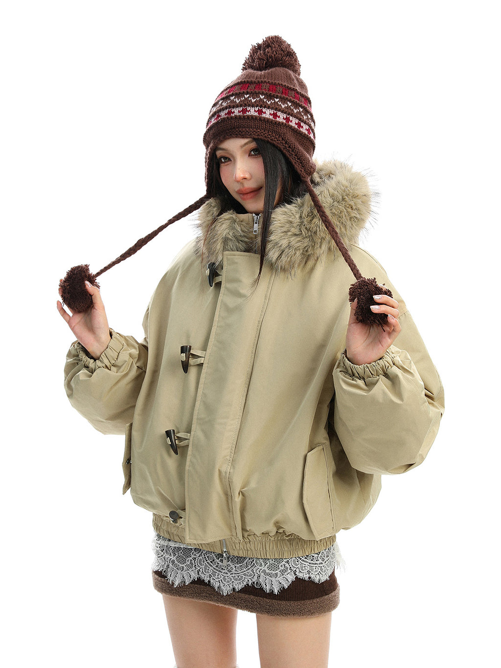 BIGGOLD | Oversized Fur-Trim Hooded Puffer Jacket Skip to content