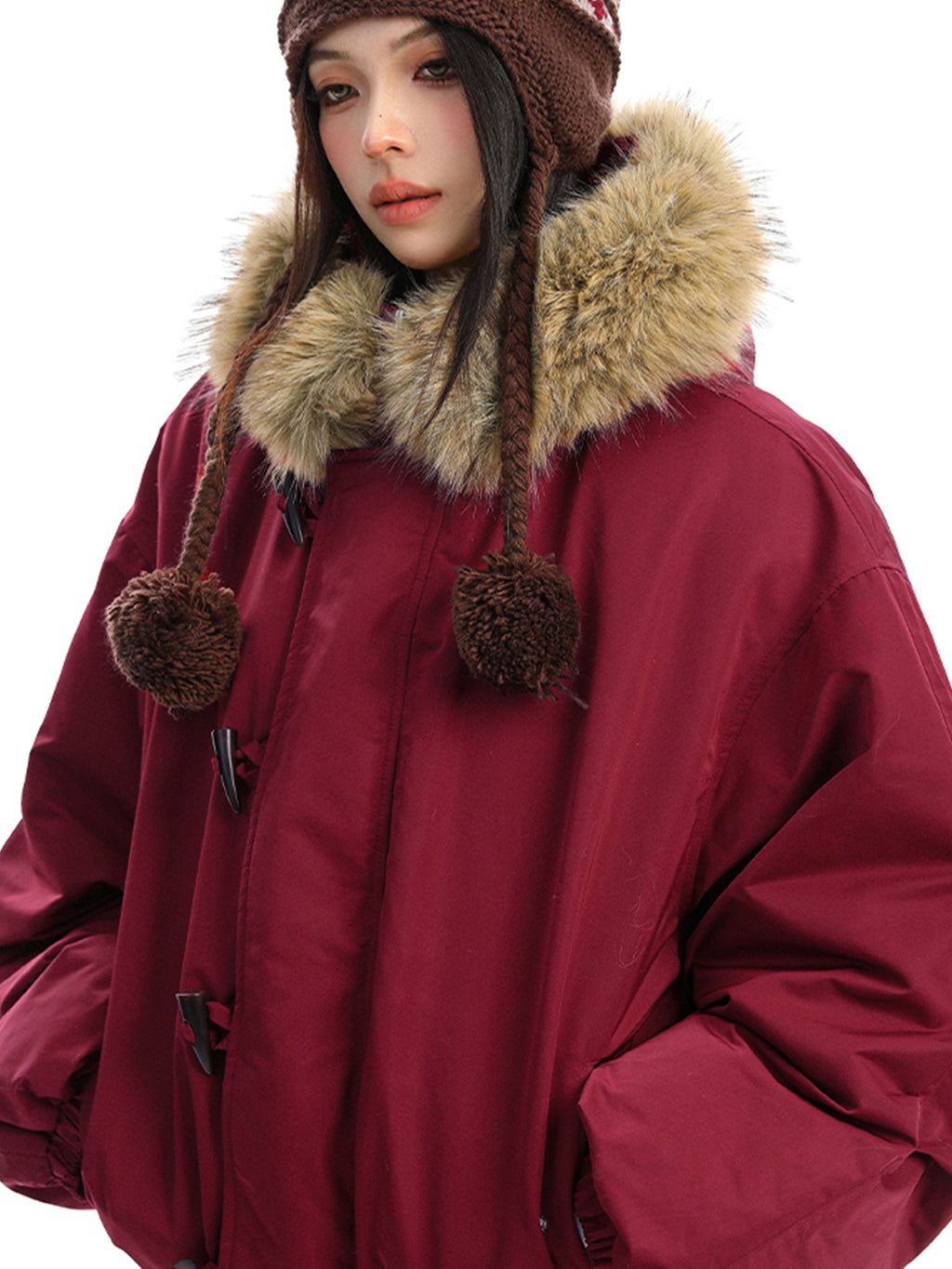BIGGOLD | Oversized Fur-Trim Hooded Puffer Jacket