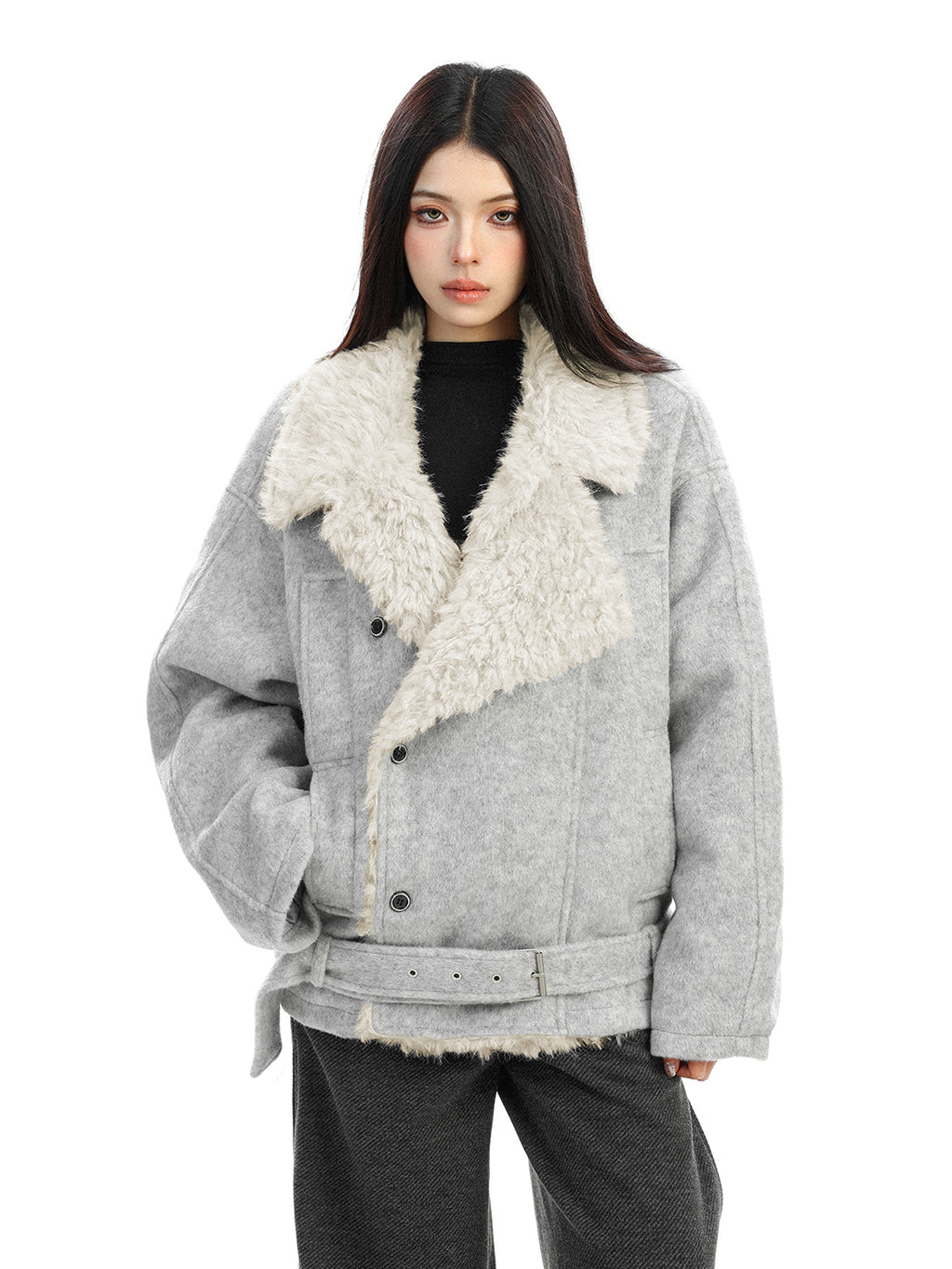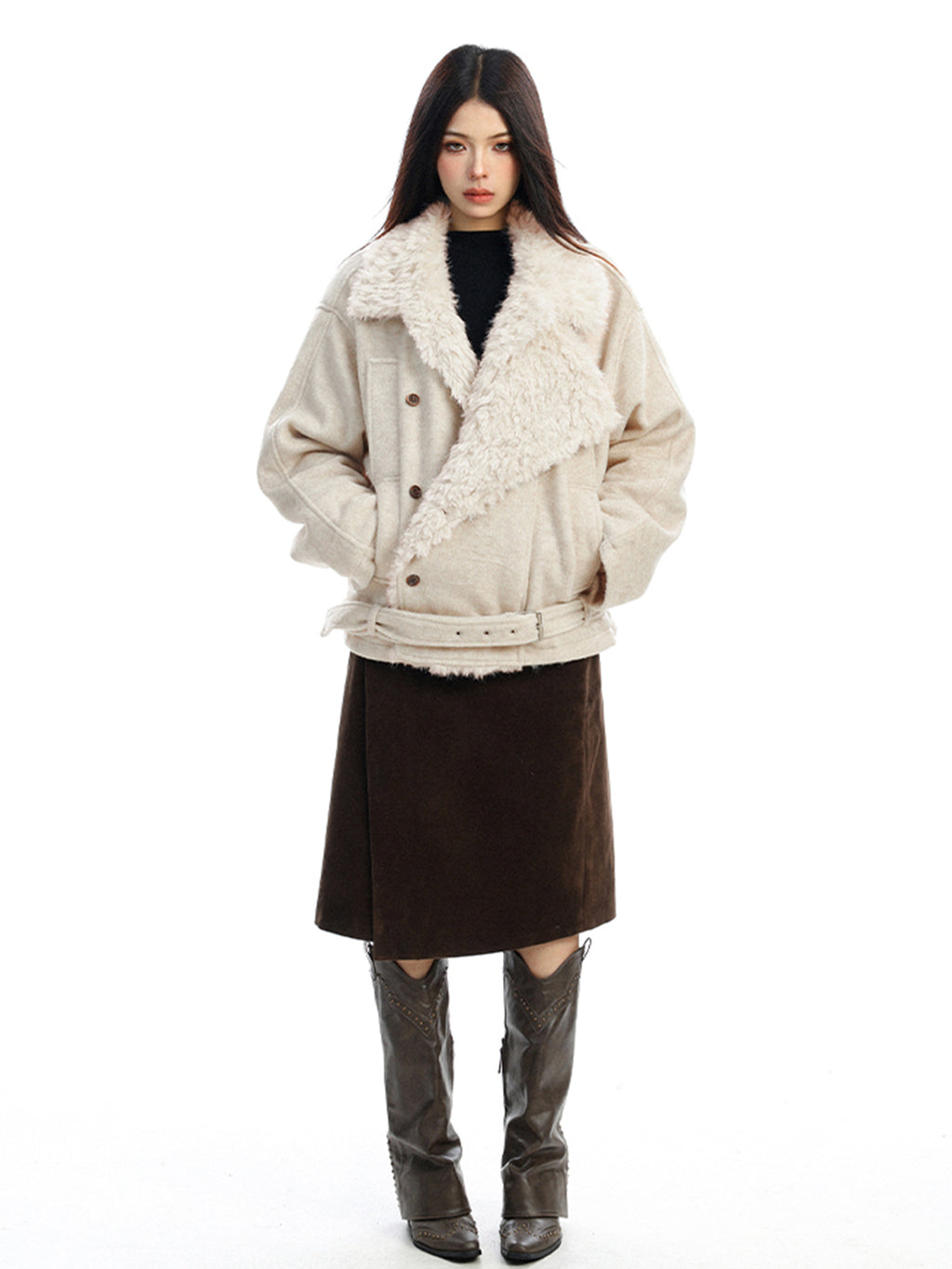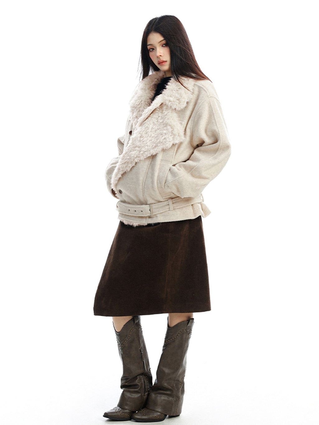 BIGGOLD | Shearling-Lined Belted Suede Jacket Skip to content