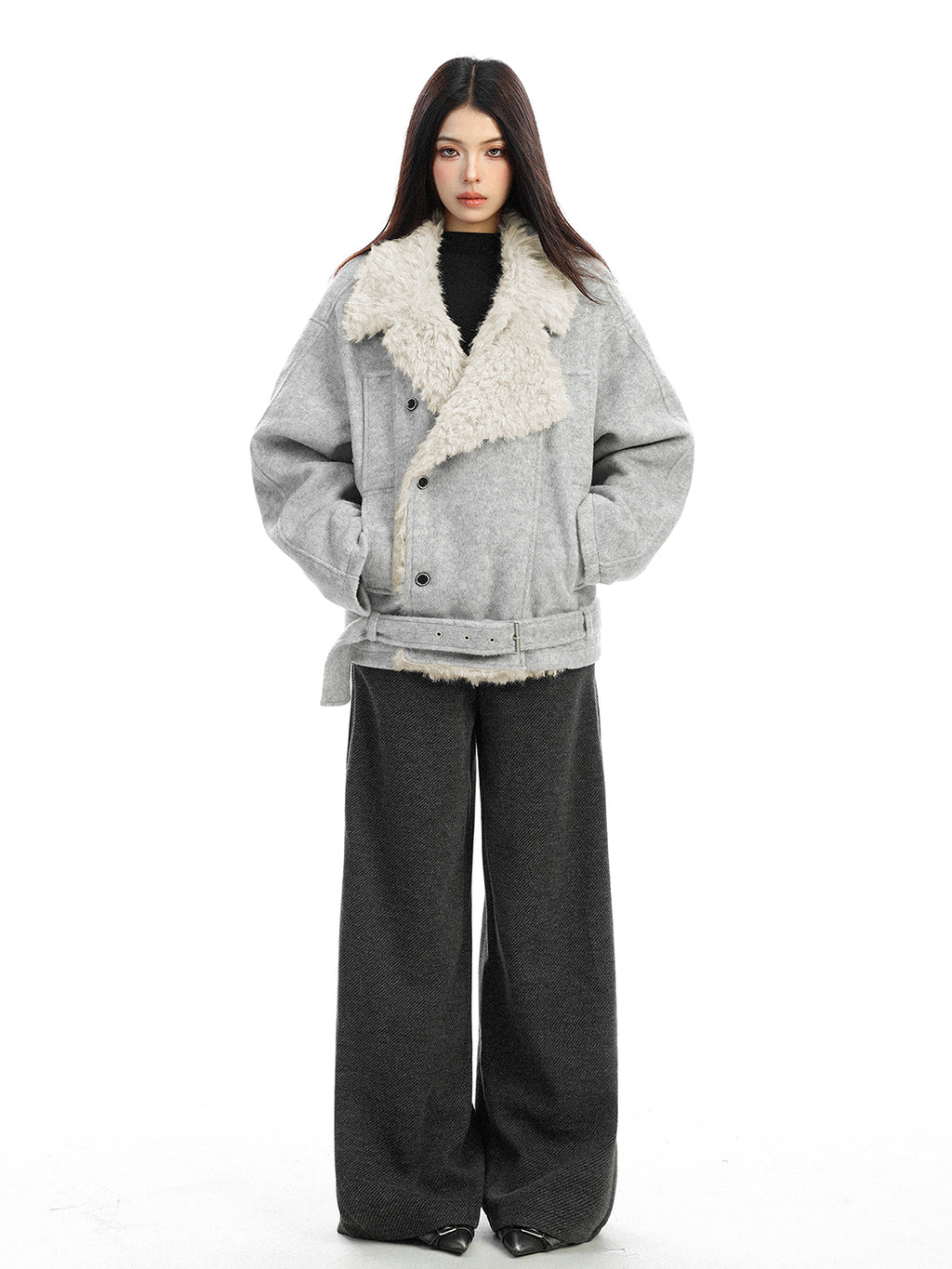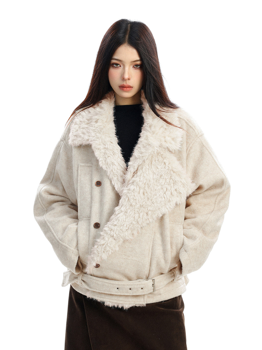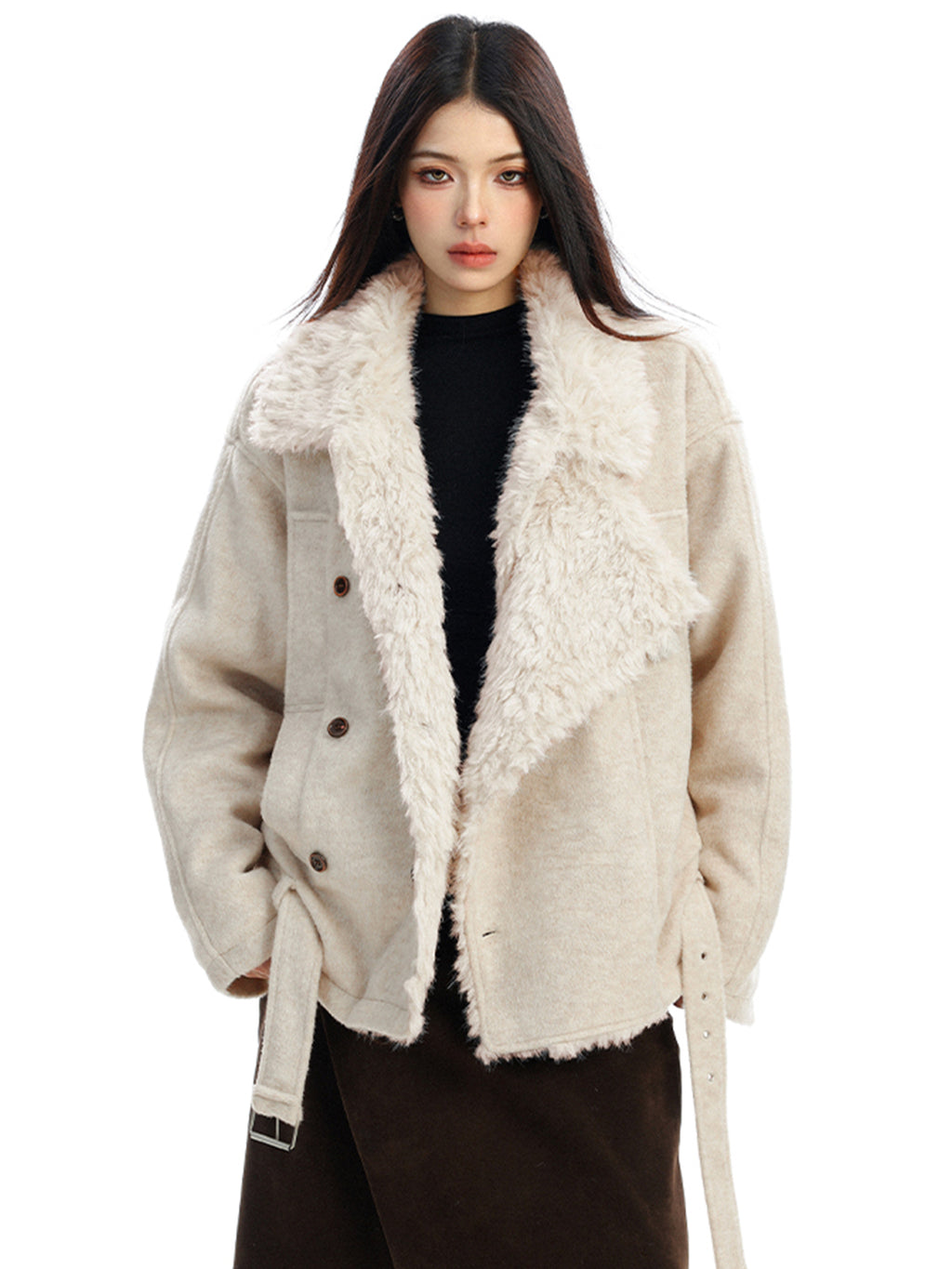 BIGGOLD | Shearling-Lined Belted Suede Jacket Skip to content