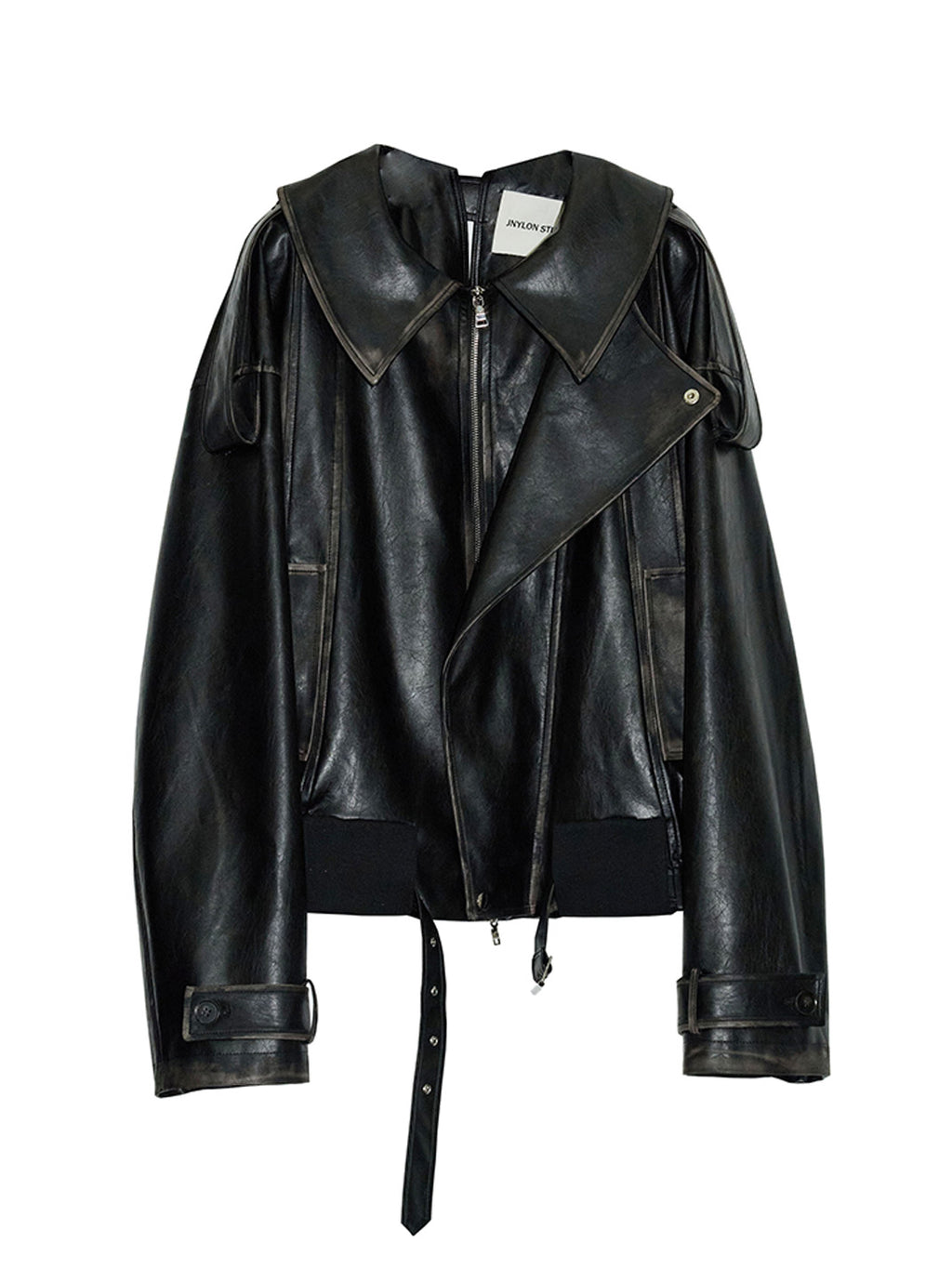 Jnylon Studios | Armor Open Collar PU Leather Oversized Quilted Jacket Skip to content