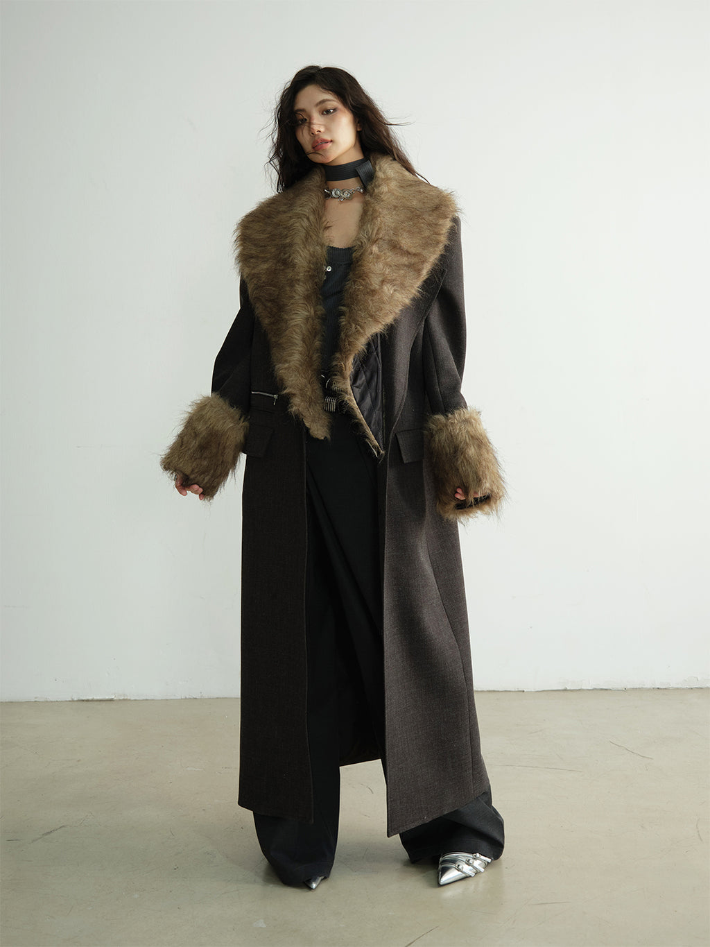 Jnylon Studios | Fur-Collar Two-way Suit Jacket Skip to content