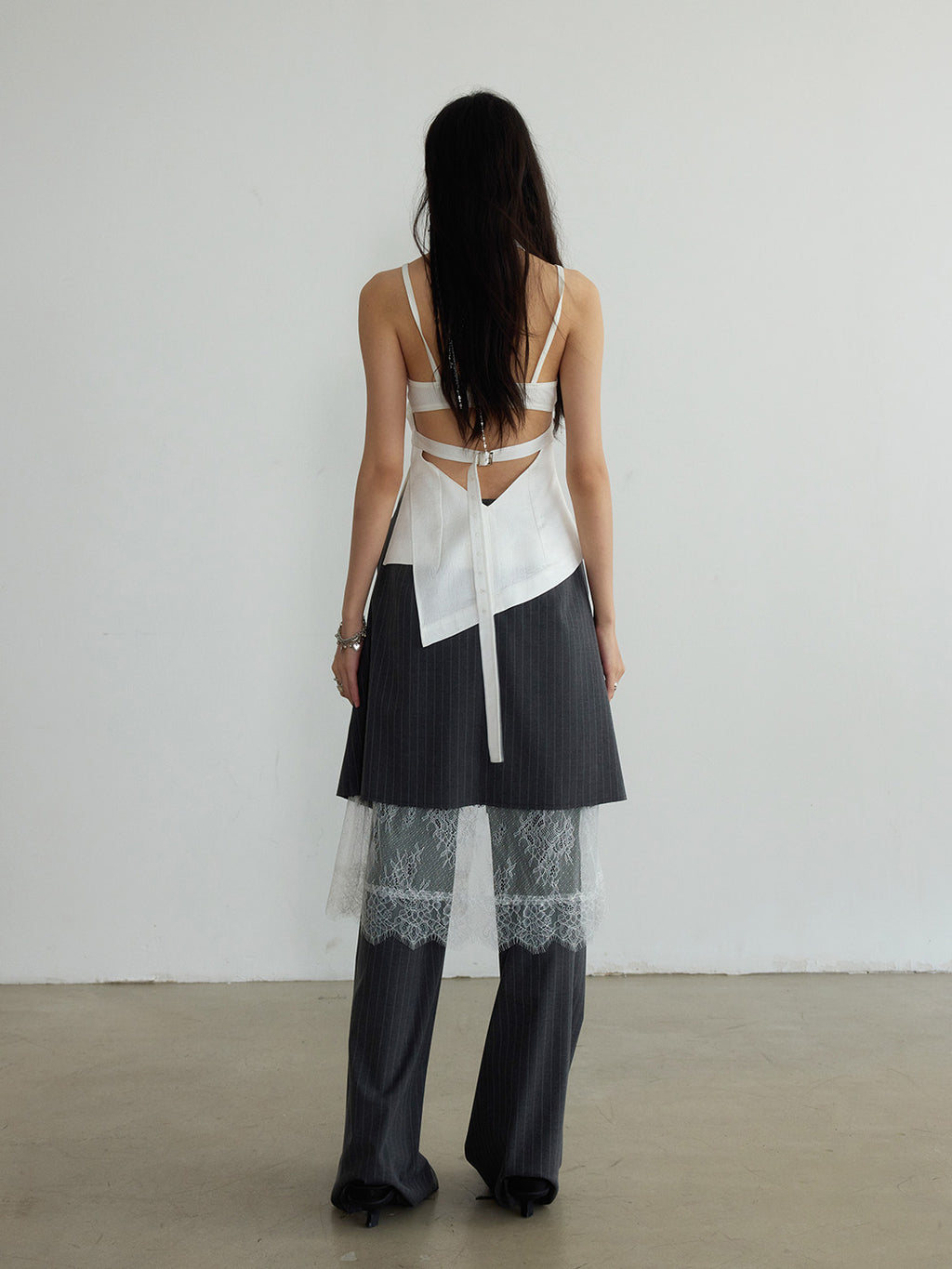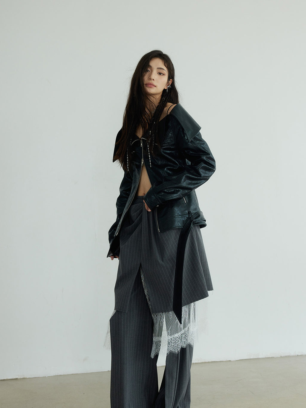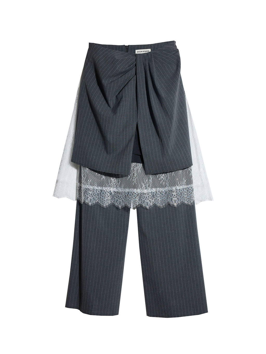 Jnylon Studios | Gray Striped Skirt And Trousers Skip to content