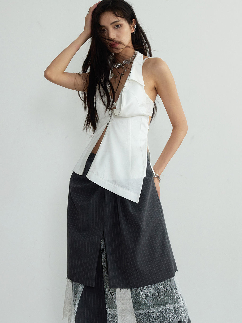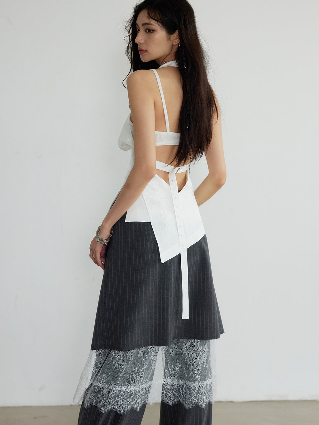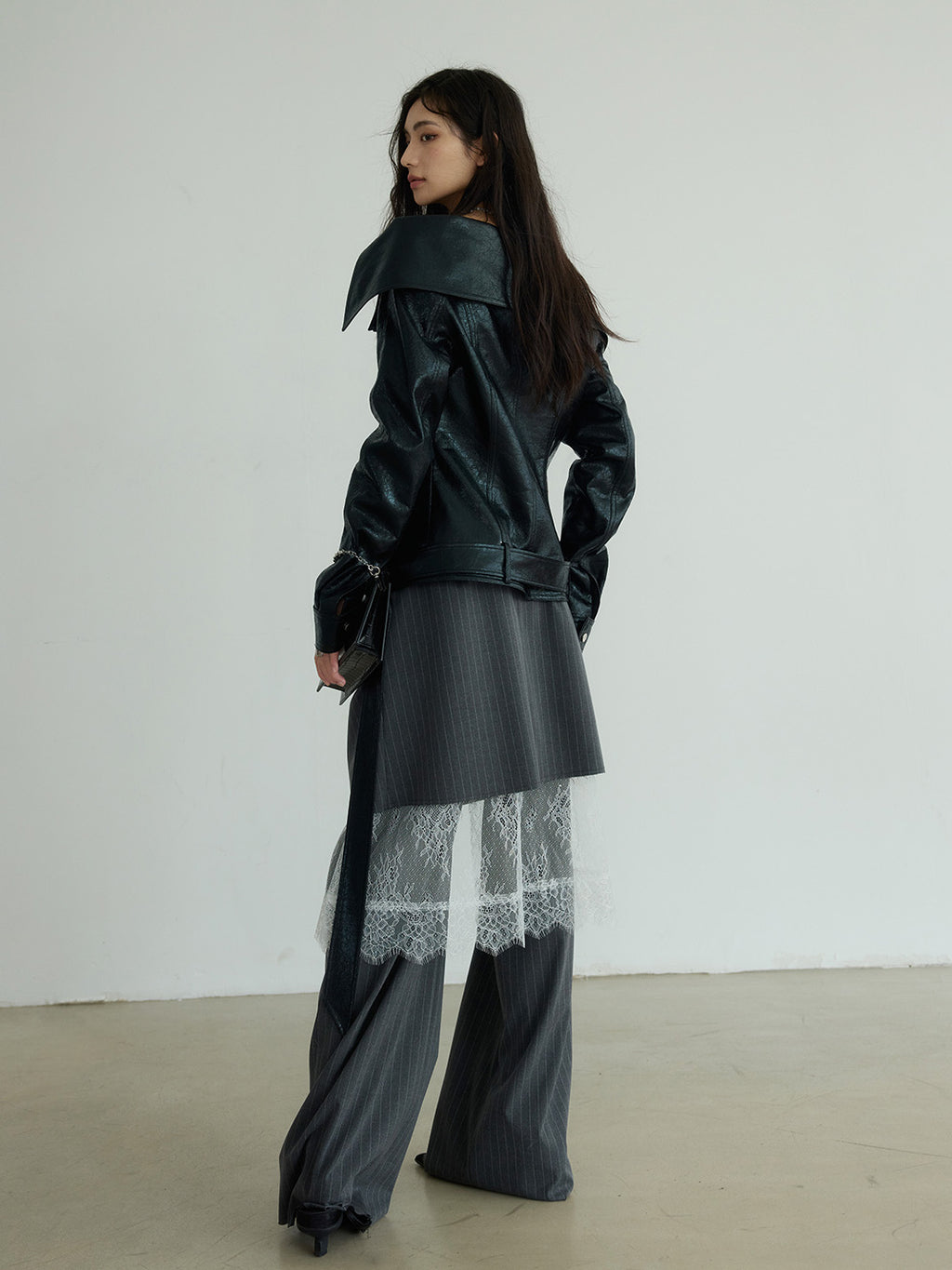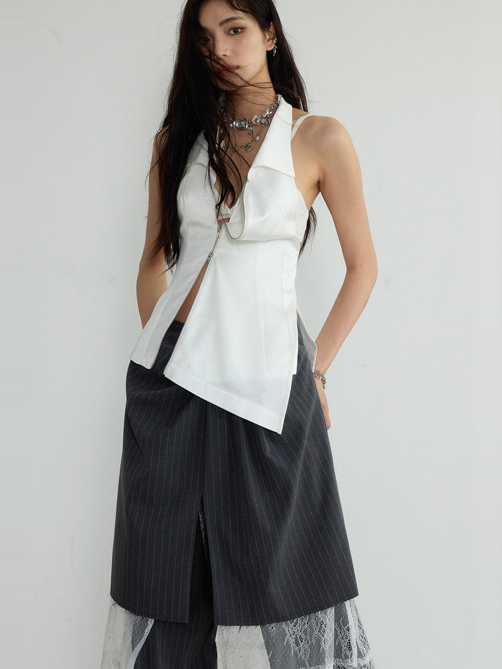 Jnylon Studios | Gray Striped Skirt And Trousers Skip to content