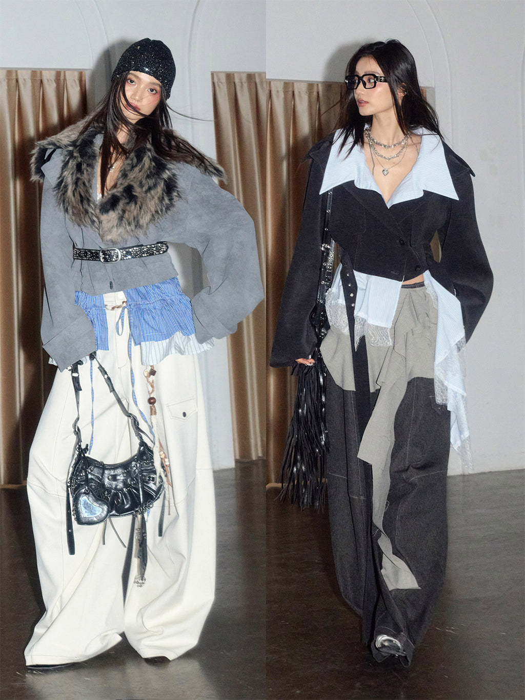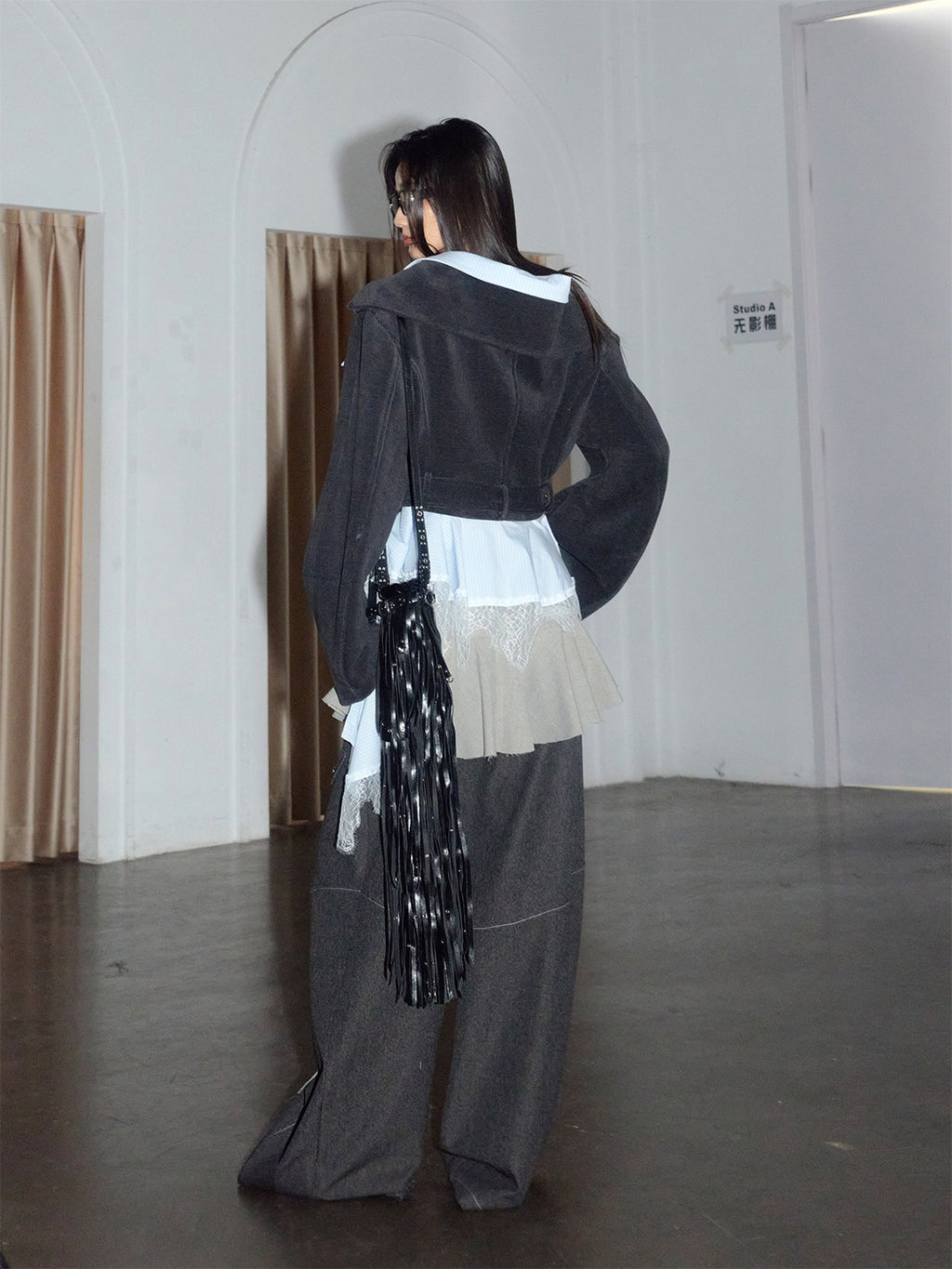 Jnylon Studios | Segmented Silhouette Curved Trousers Skip to content