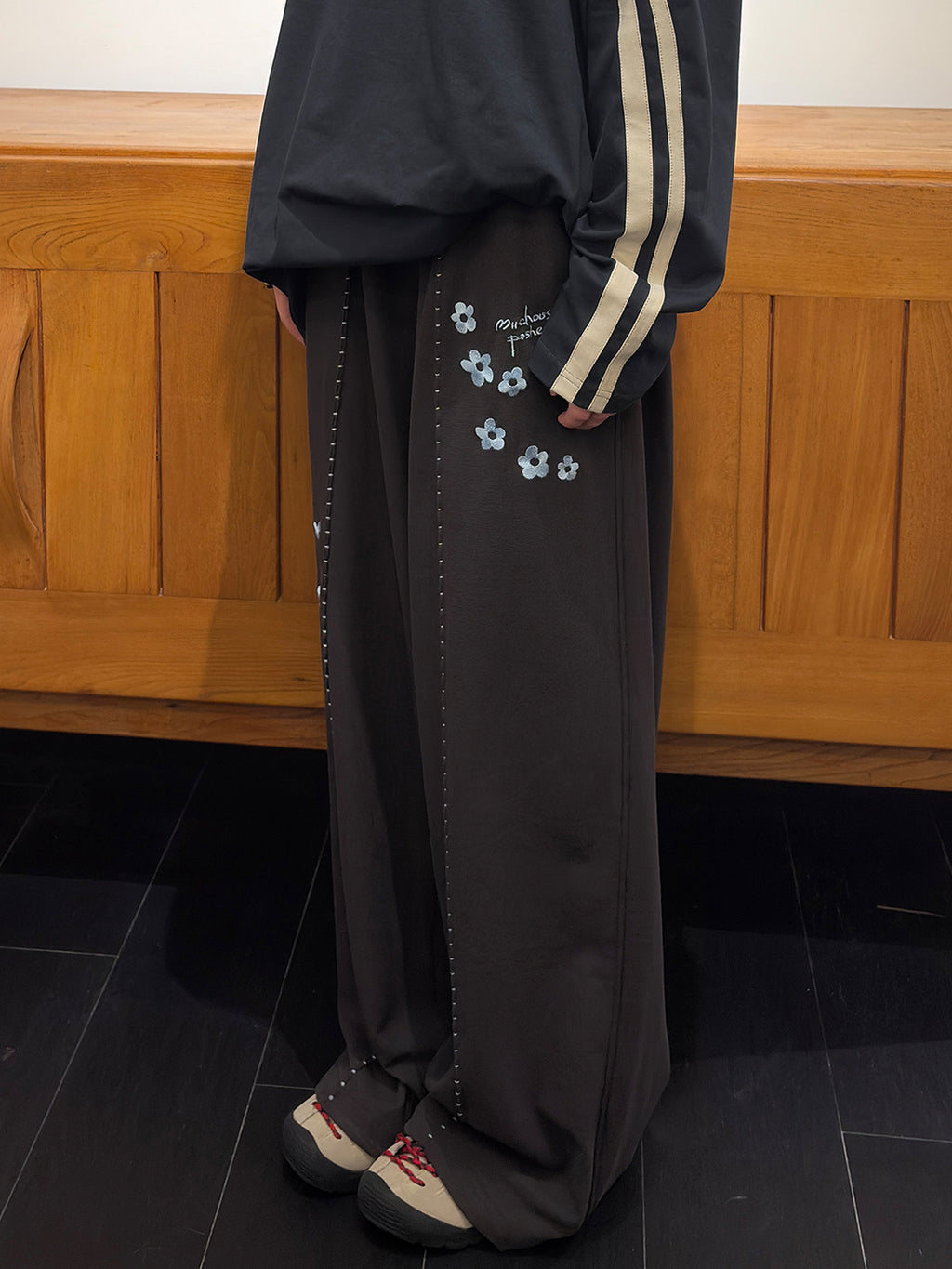 MIICHOUS | Floral Embroidered Waffle Lounge Pants