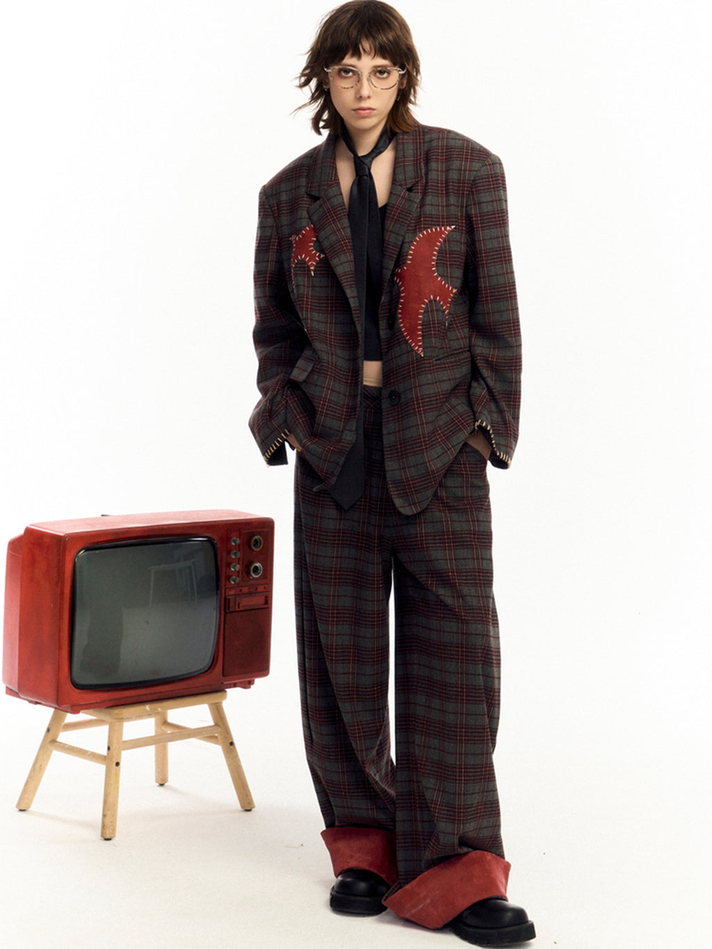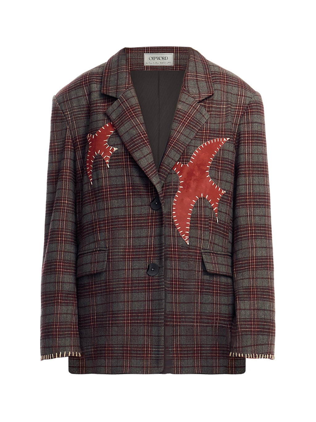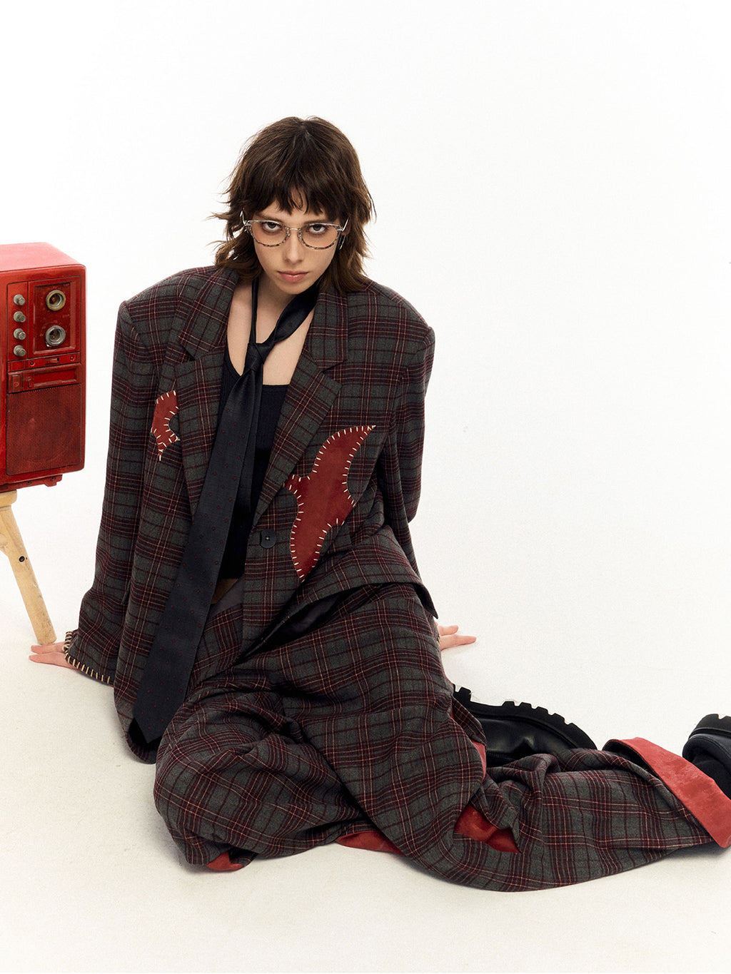 This "Bound Bird" casual suit set is made of high-quality composite wool fabric, embellished with heavy-duty PU leather appliqués, giving it a unique and textured feel. The bird-themed embroidered design blends the inspiration of "restraint and freedom," creating a suit that combines practicality and style.