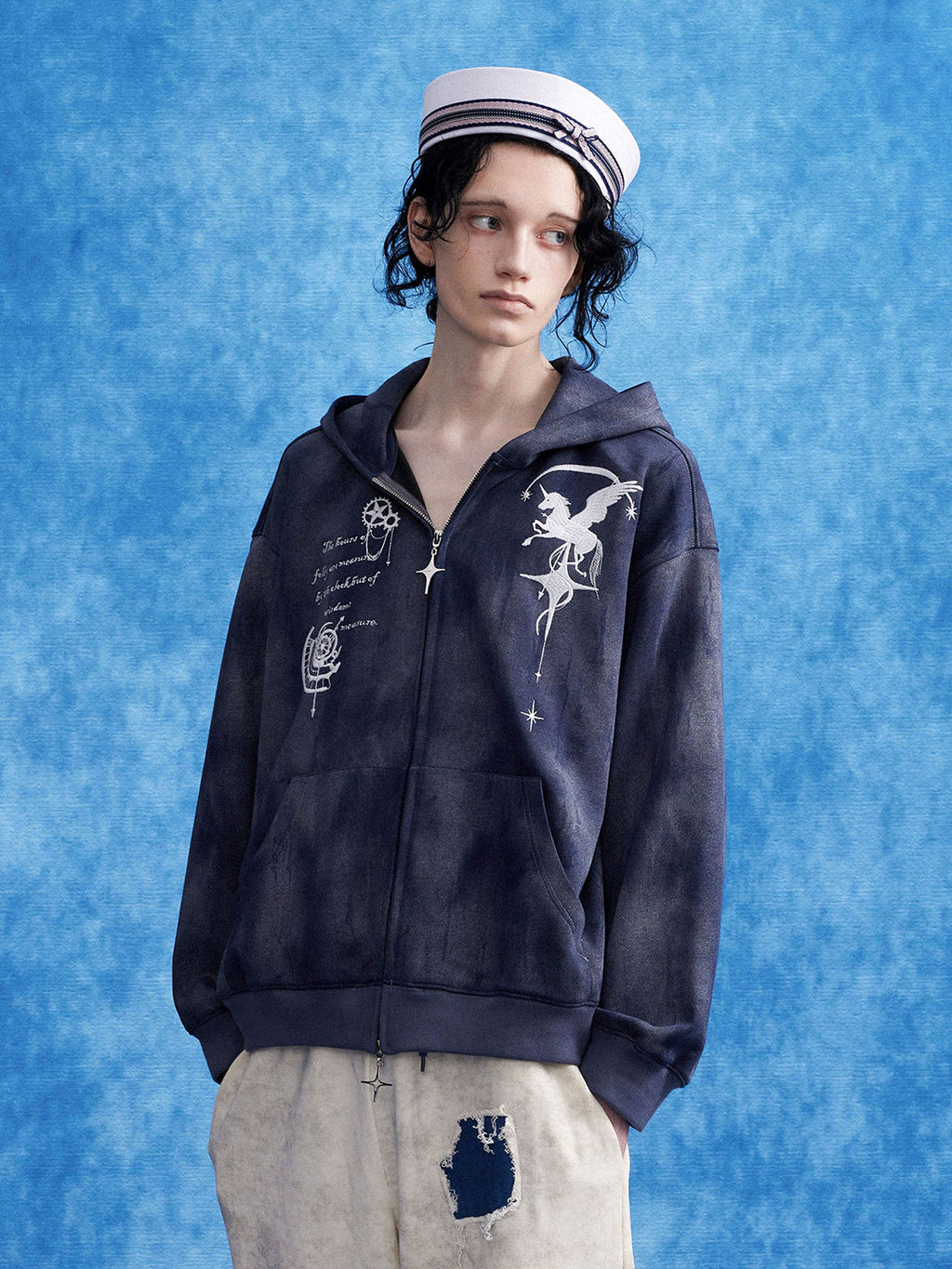 An embroidered coat inspired by "Pegasus" and "time" carries the English meaning: "A fool's time can be measured by clocks, but for a wise man, no clock can measure it." It allows you to unleash your wildest ideas and bring them into the real-world timeline, embroidering your own path in the latitude and longitude of time.