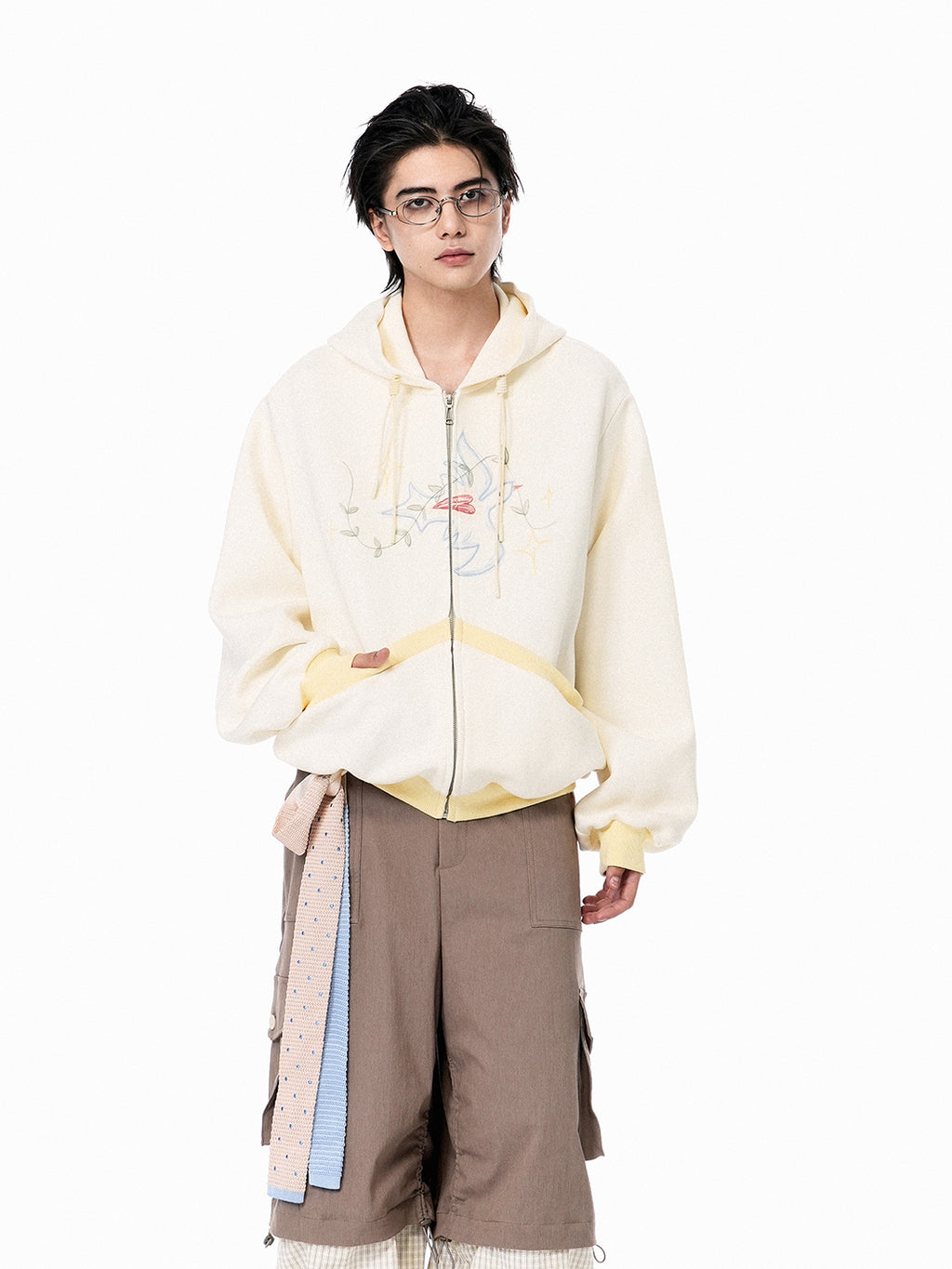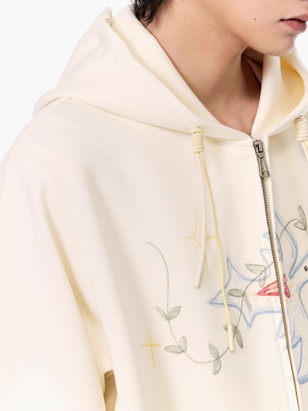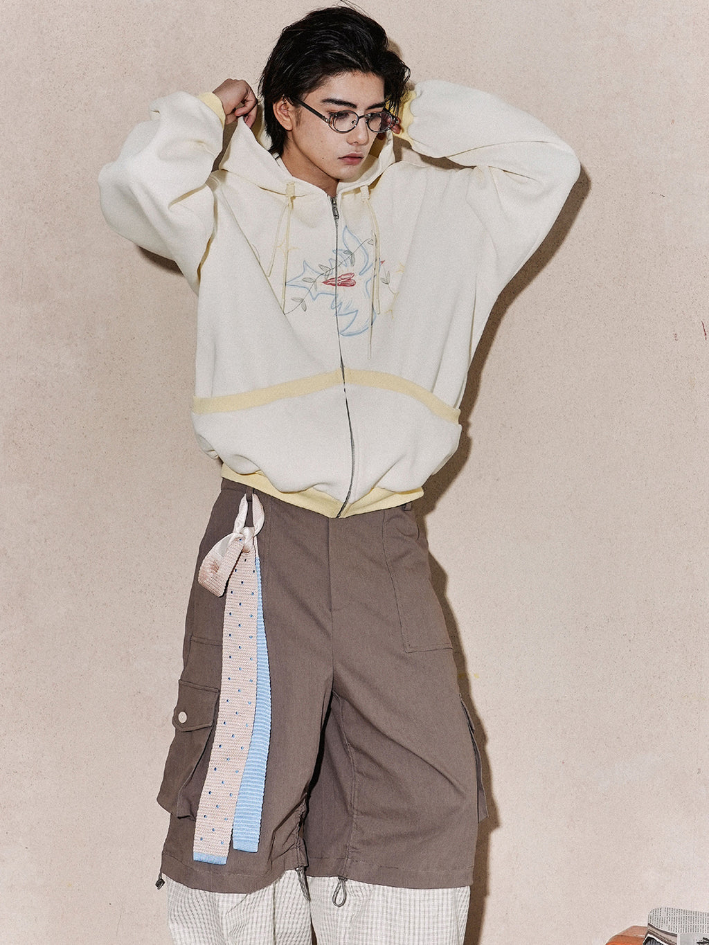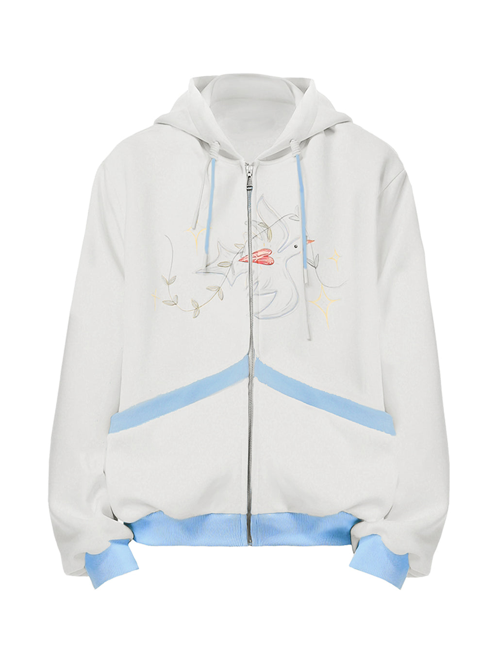 This sweatshirt jacket, inspired by the theme of "May the world be at peace," is crafted from high-quality jelly sweatshirt fabric that is both structured and soft. Drawing inspiration from the symbol of peace and incorporating a unique pocket design, it breaks with convention to create a jacket with distinctive meaning.