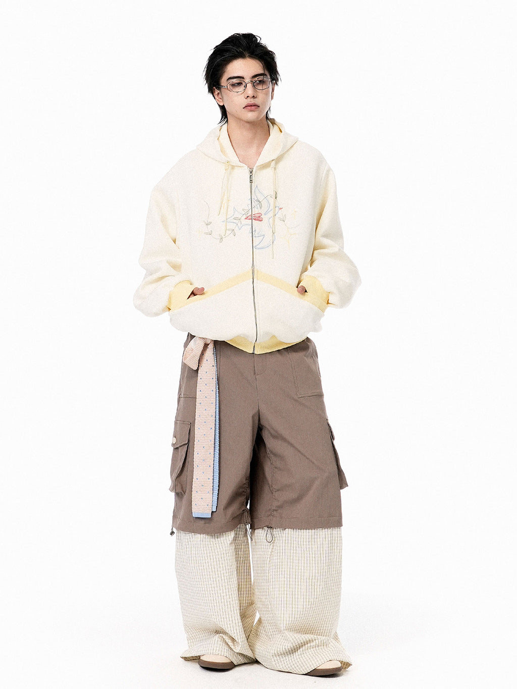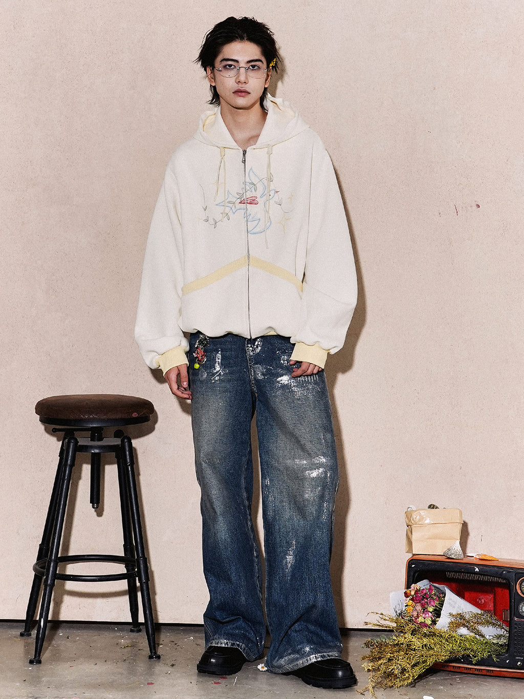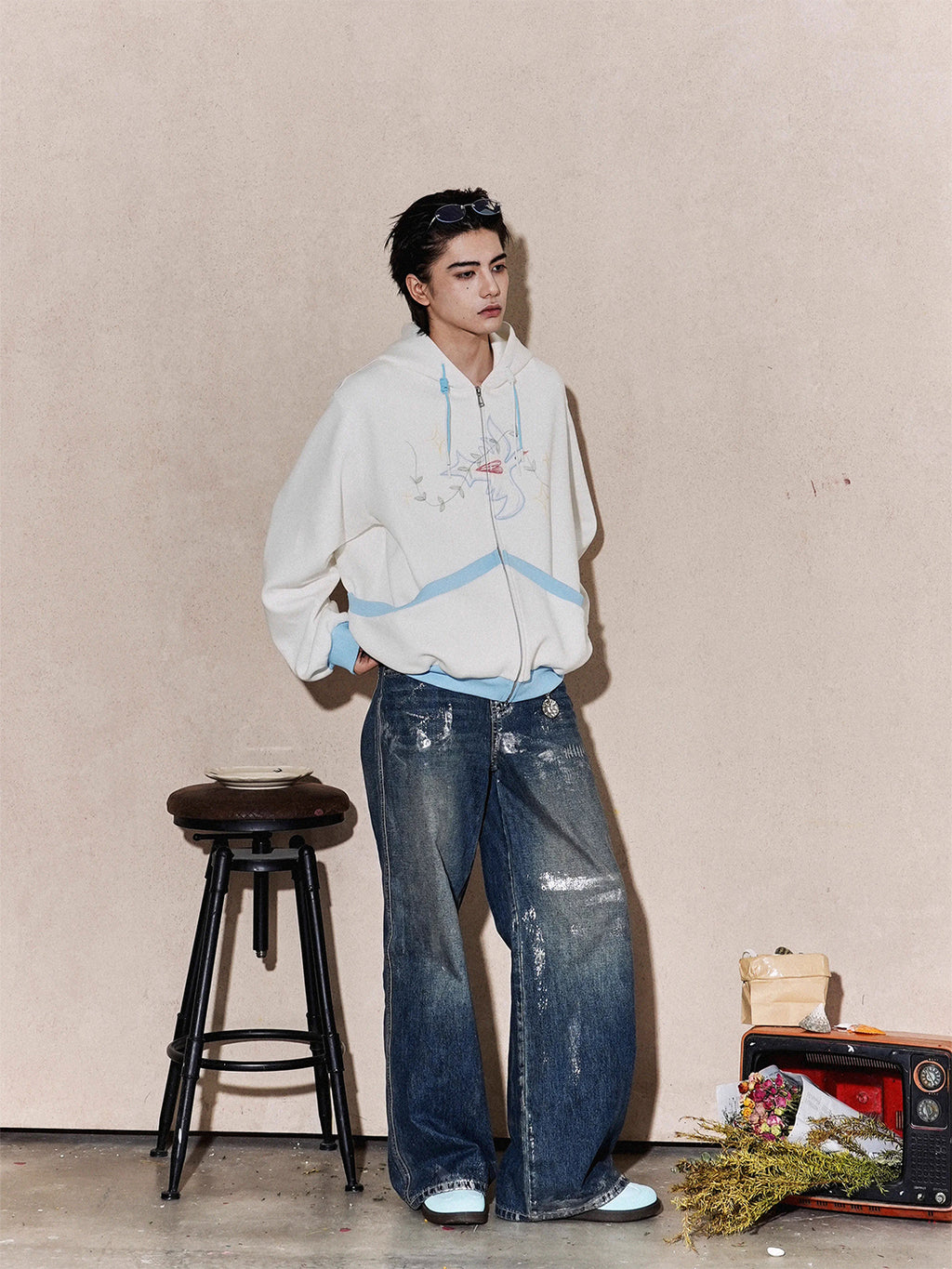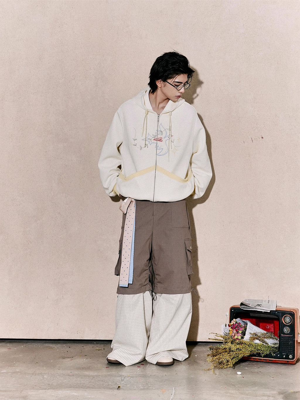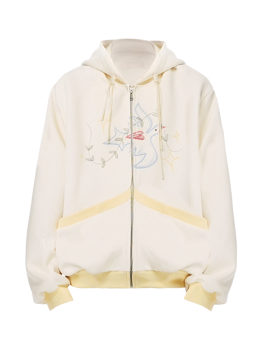 This sweatshirt jacket, inspired by the theme of "May the world be at peace," is crafted from high-quality jelly sweatshirt fabric that is both structured and soft. Drawing inspiration from the symbol of peace and incorporating a unique pocket design, it breaks with convention to create a jacket with distinctive meaning.