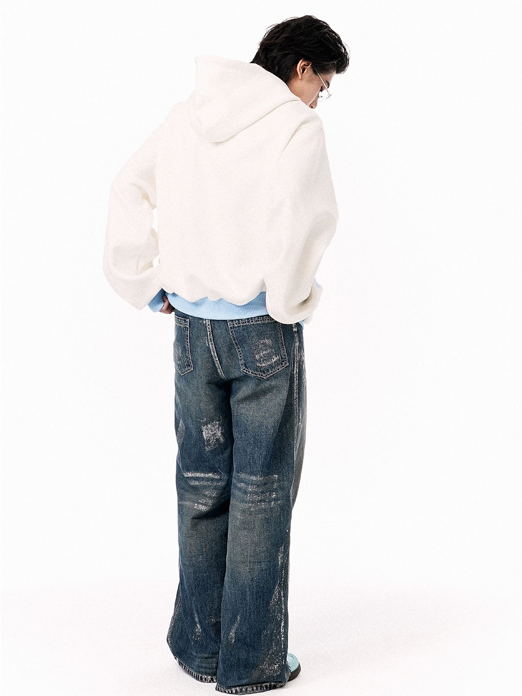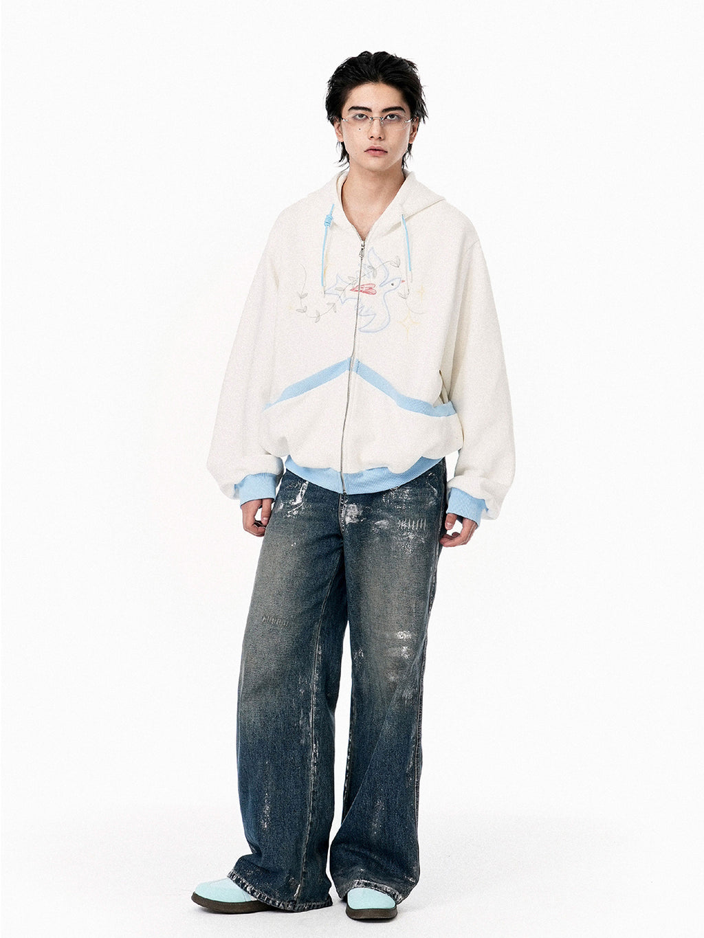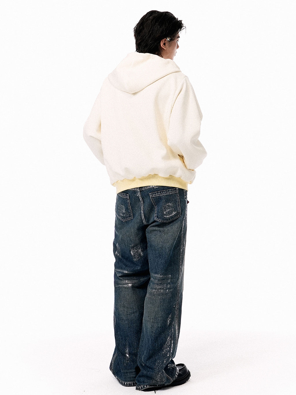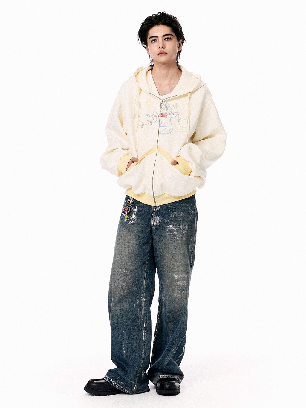 This sweatshirt jacket, inspired by the theme of "May the world be at peace," is crafted from high-quality jelly sweatshirt fabric that is both structured and soft. Drawing inspiration from the symbol of peace and incorporating a unique pocket design, it breaks with convention to create a jacket with distinctive meaning.