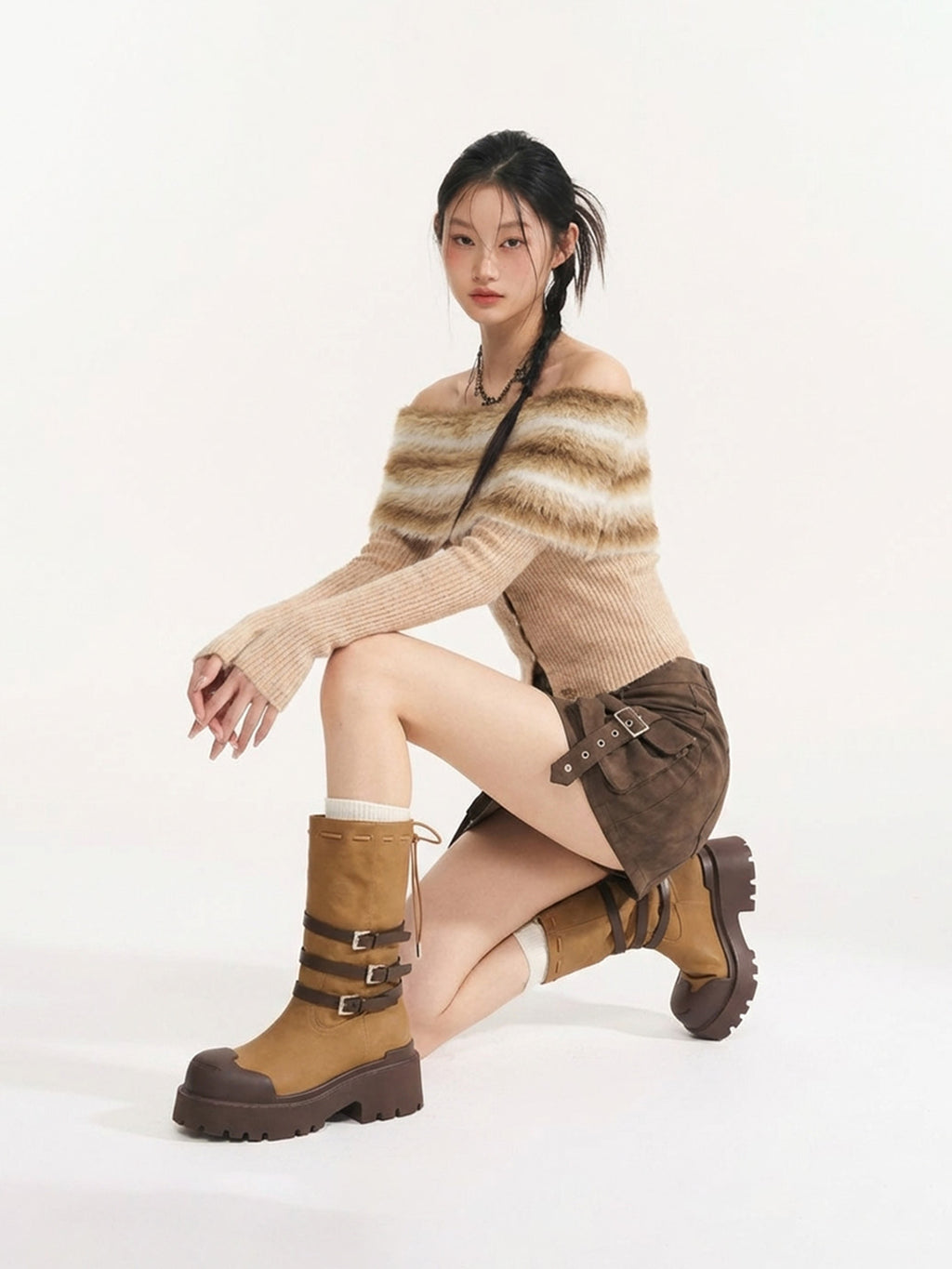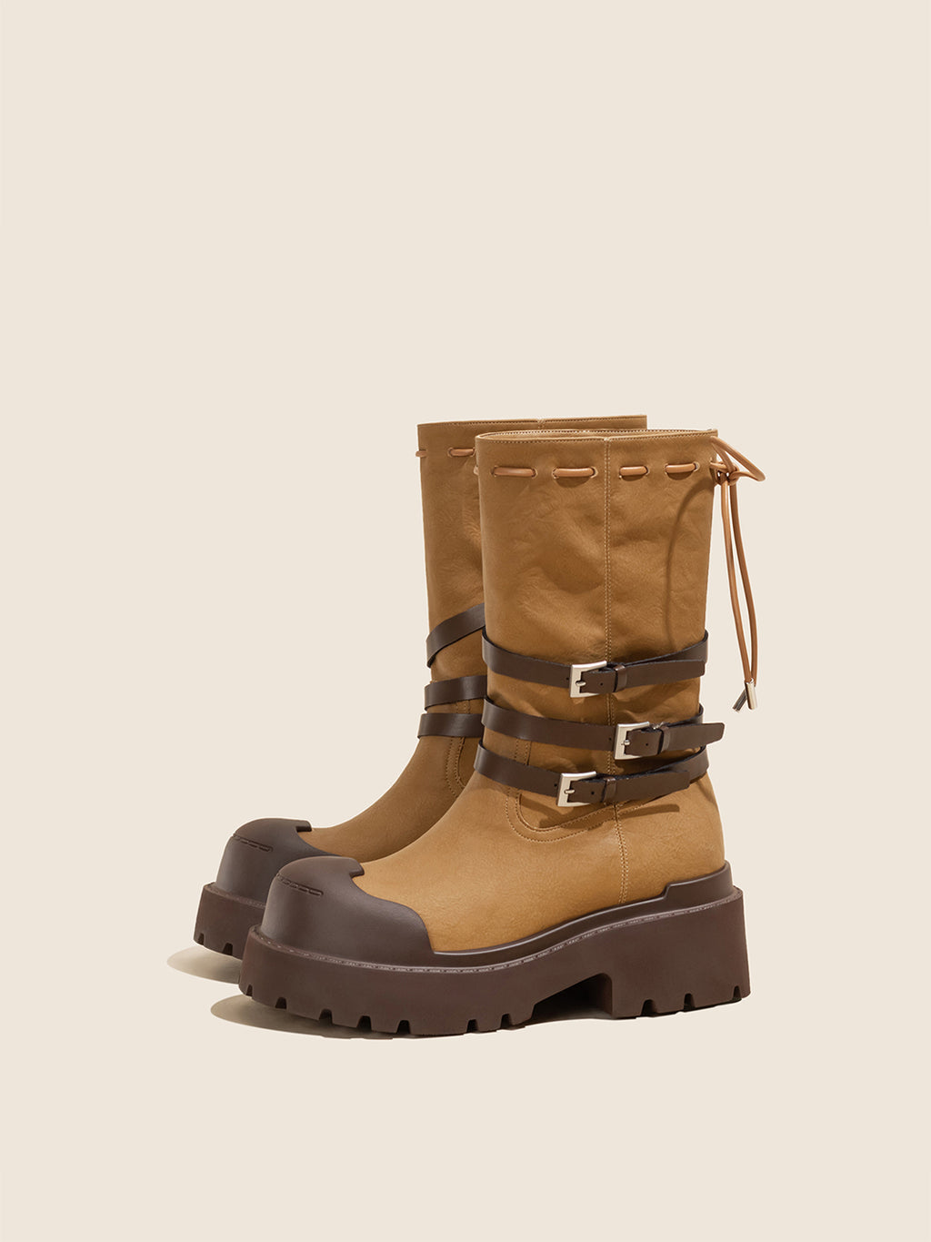 OLDMEOW | Buckle Strap Drawstring Platform Boots