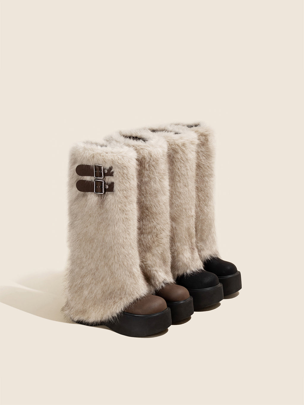 OLDMEOW | Double Buckle Faux Fur Platform Boots