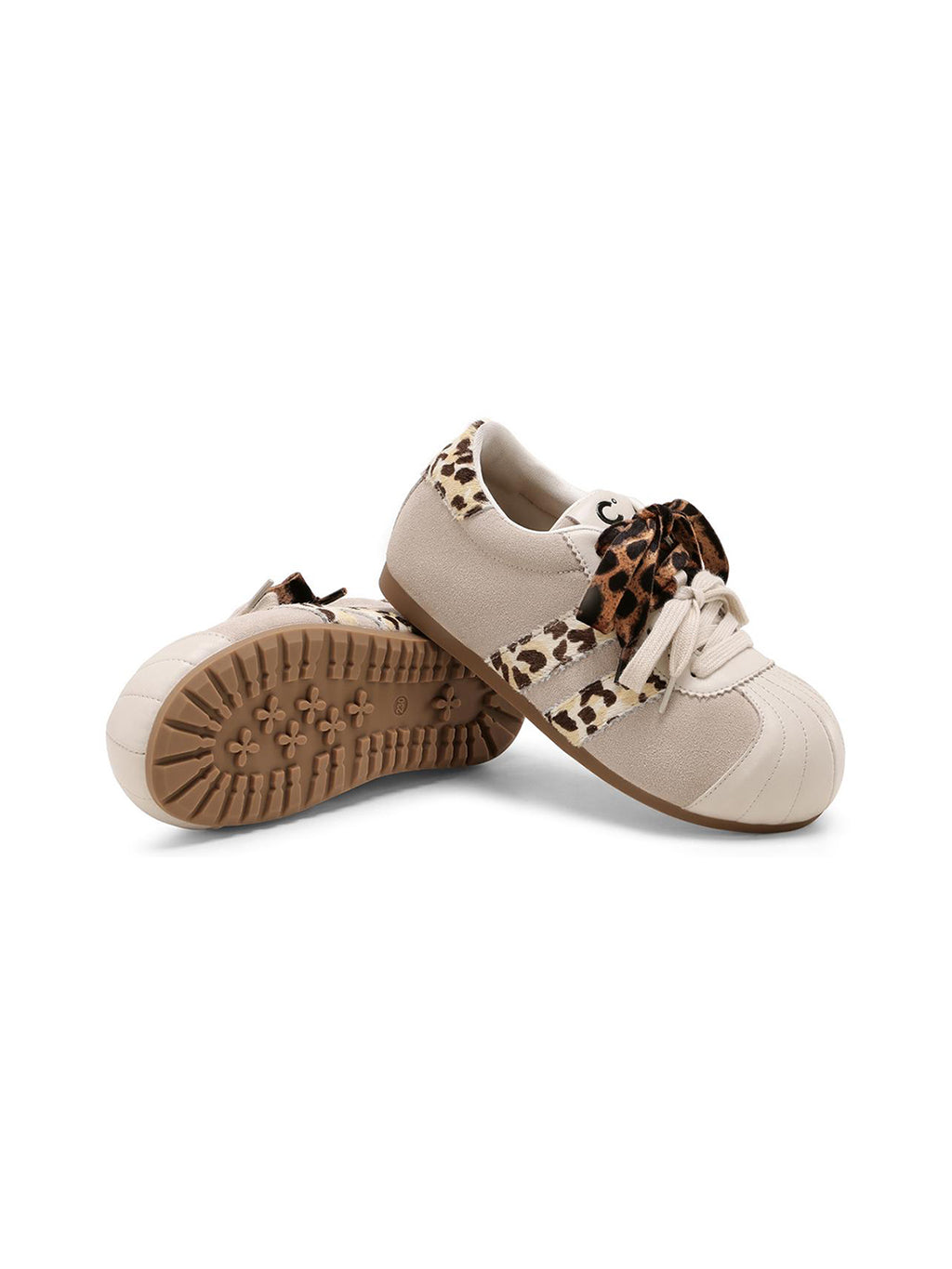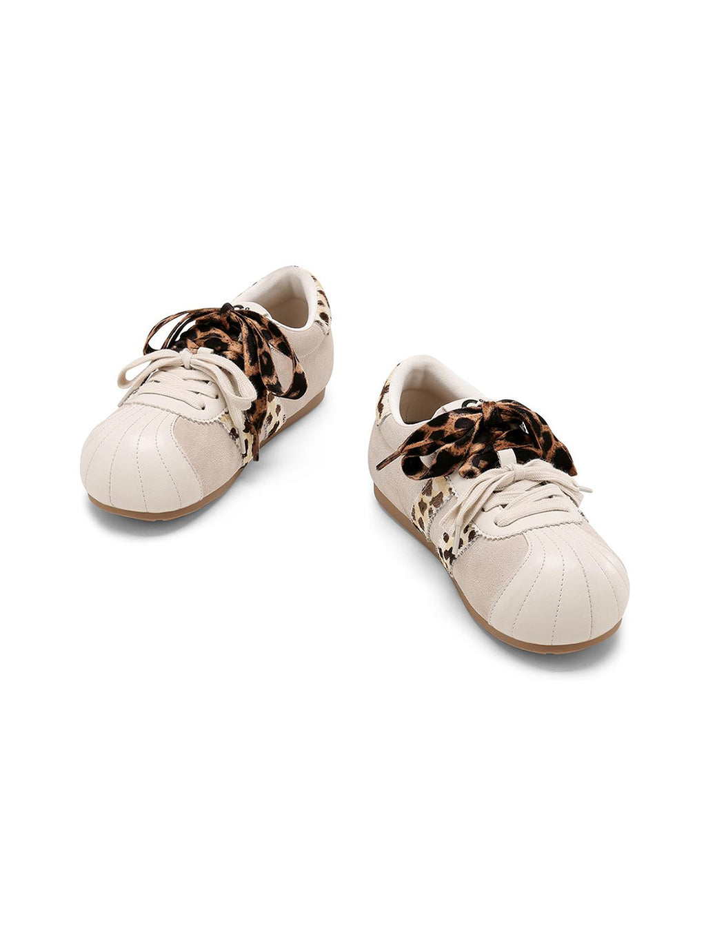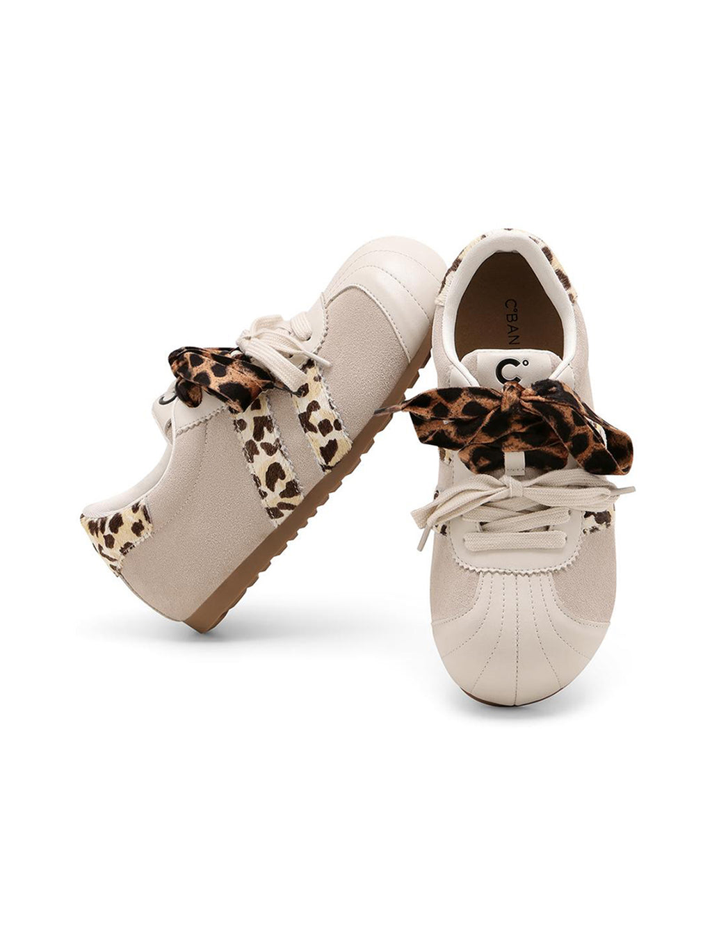 C.BANNER | Beige Leopard Panel Low-Top Sneakers