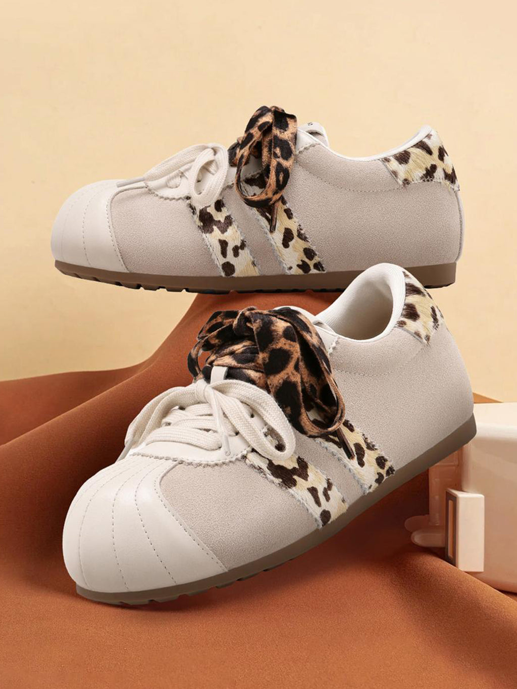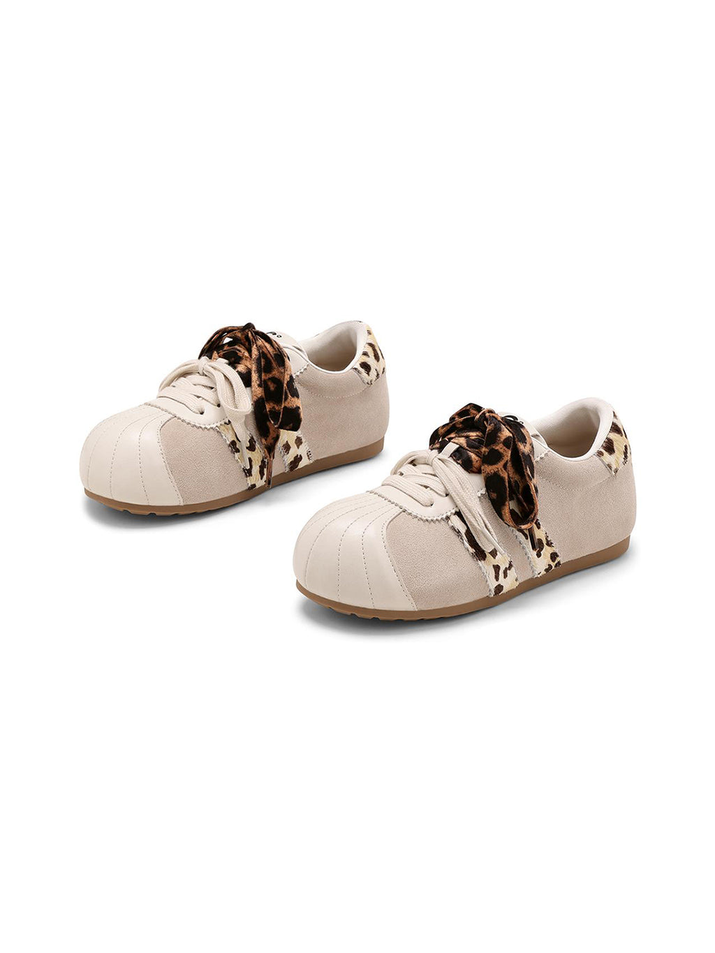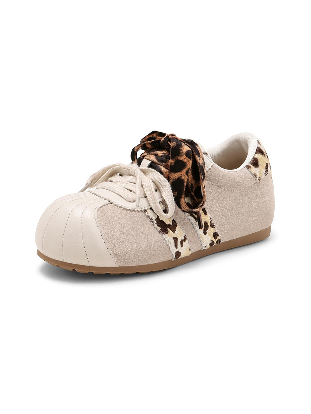 C.BANNER | Beige Leopard Panel Low-Top Sneakers