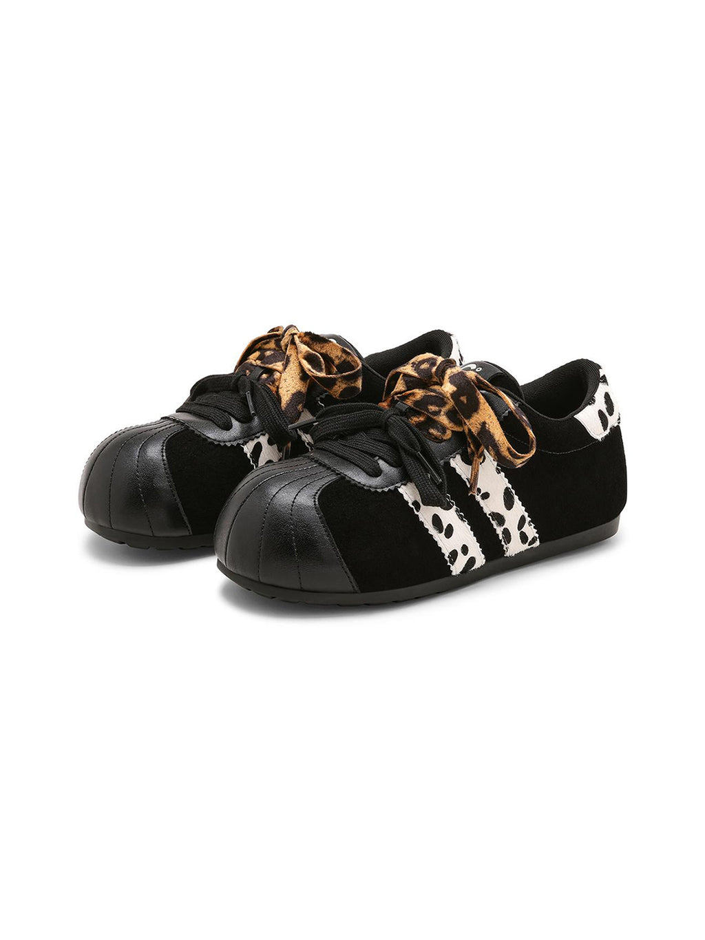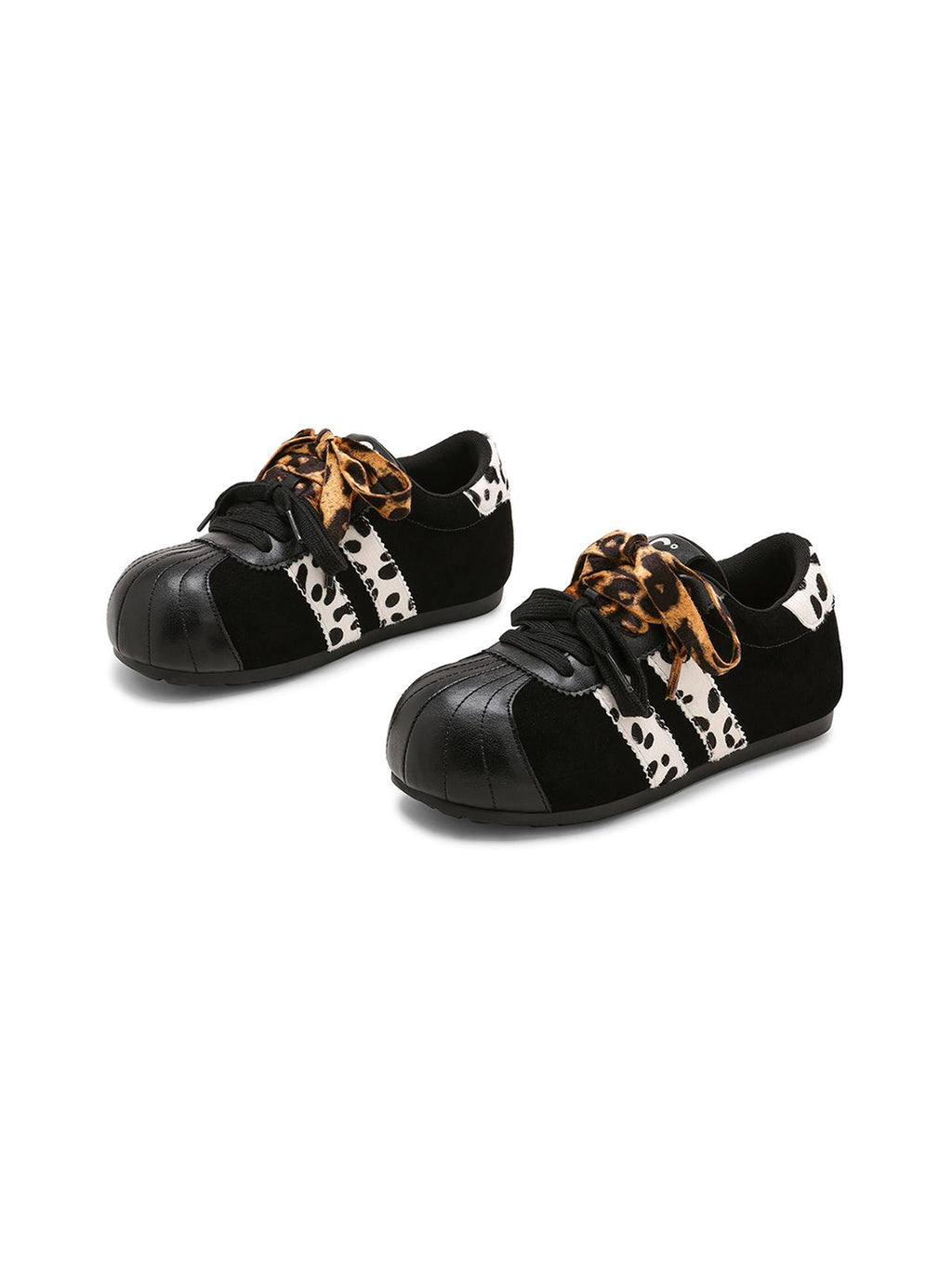 C.BANNER | Black Leopard Panel Low-Top Sneakers Skip to content