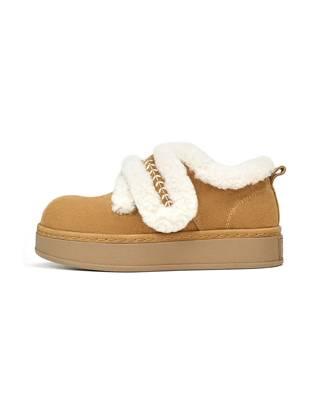 C.BANNER | Camel Shearling Platform Slip-On Shoes Skip to content
