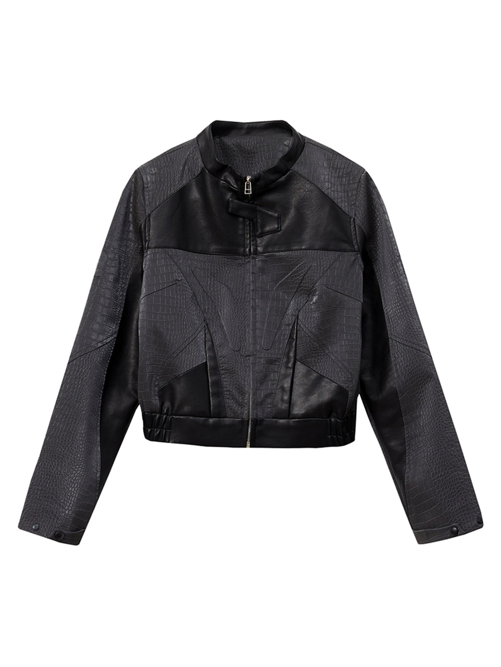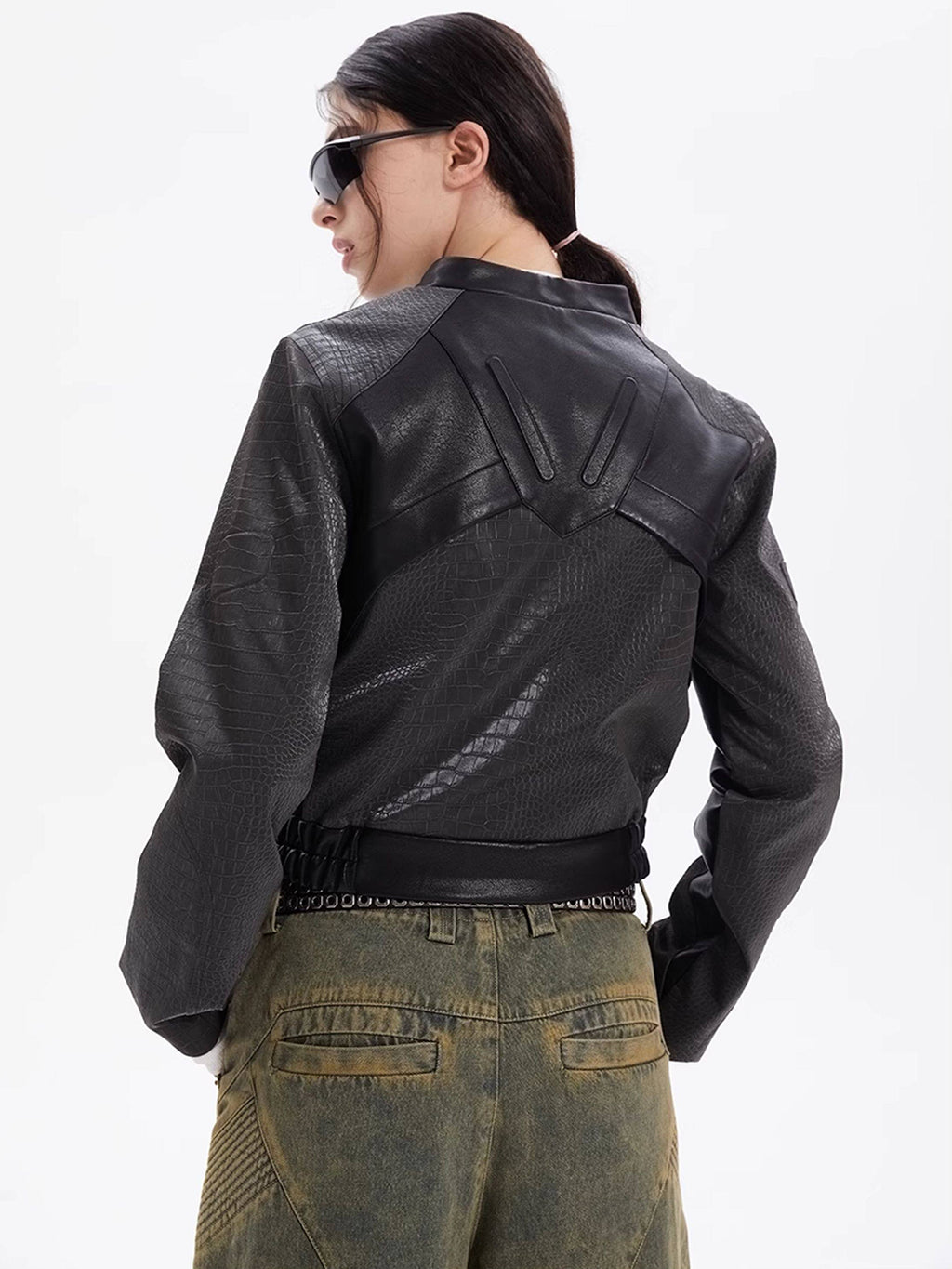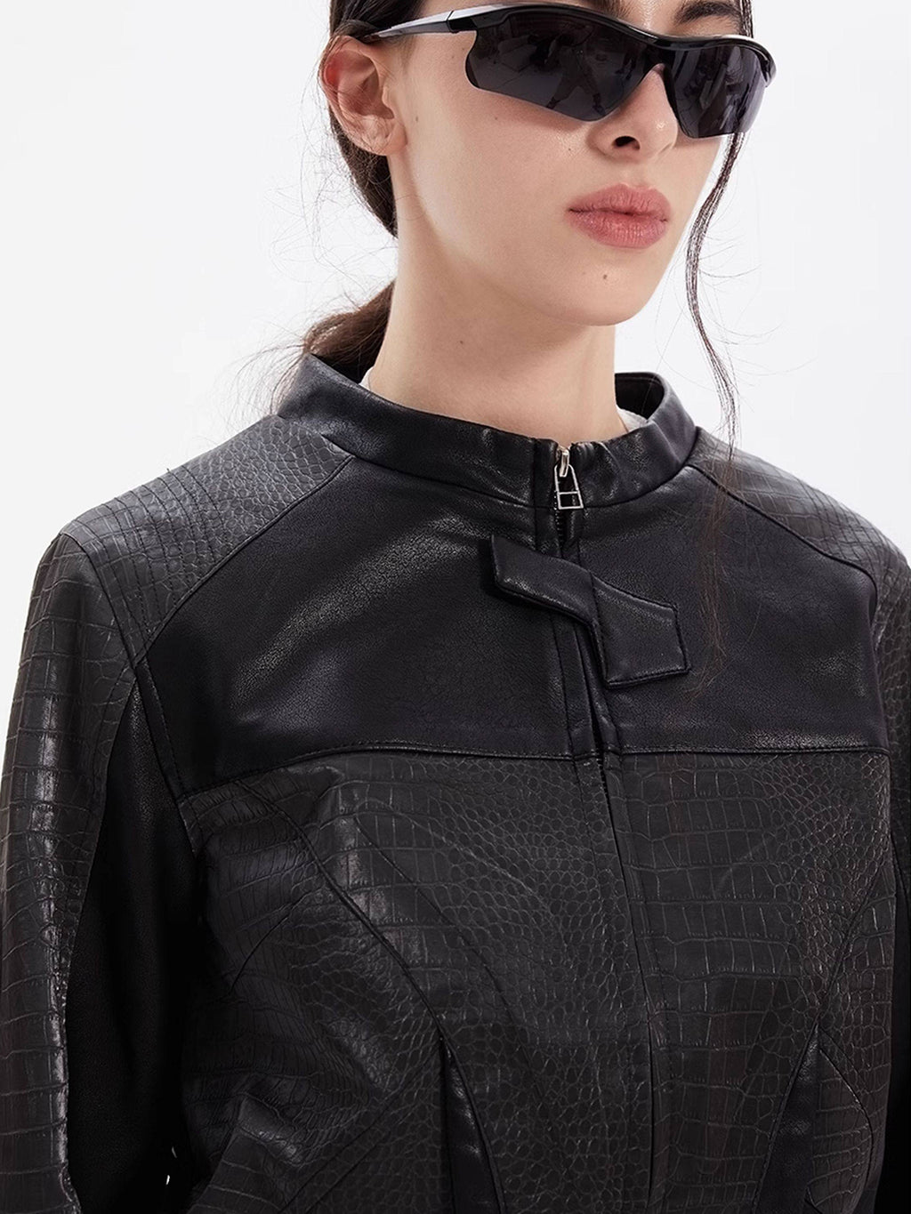 ECR | Crocodile-Patterned Slim-fit Leather Jacket Skip to content