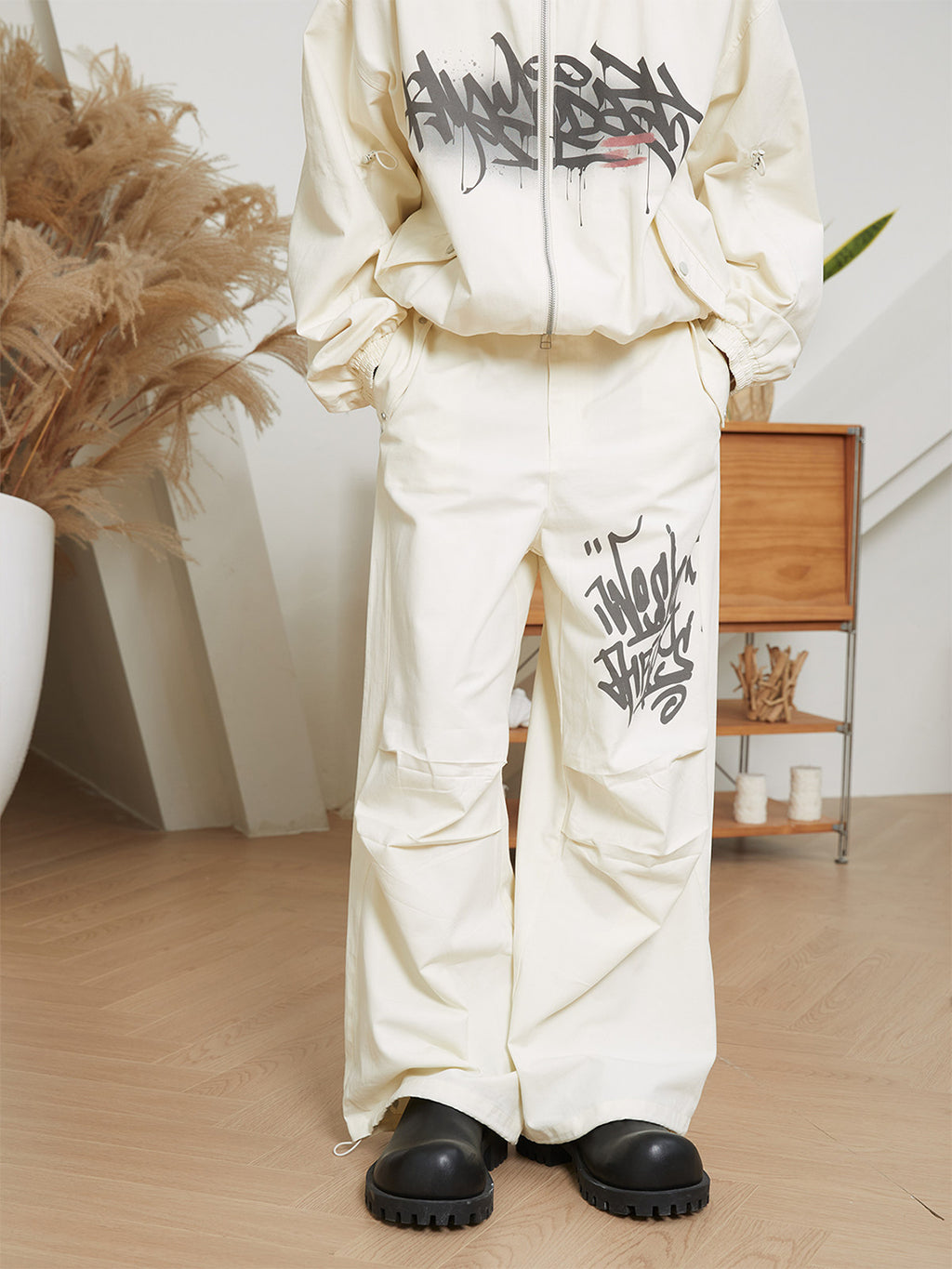 ECR | Graffiti Print Zipper Jacket Wide-Leg Pants White Suit