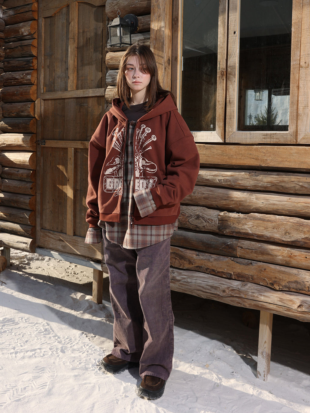 ECR | Split Graphic Faux Layer Hoodie Skip to content