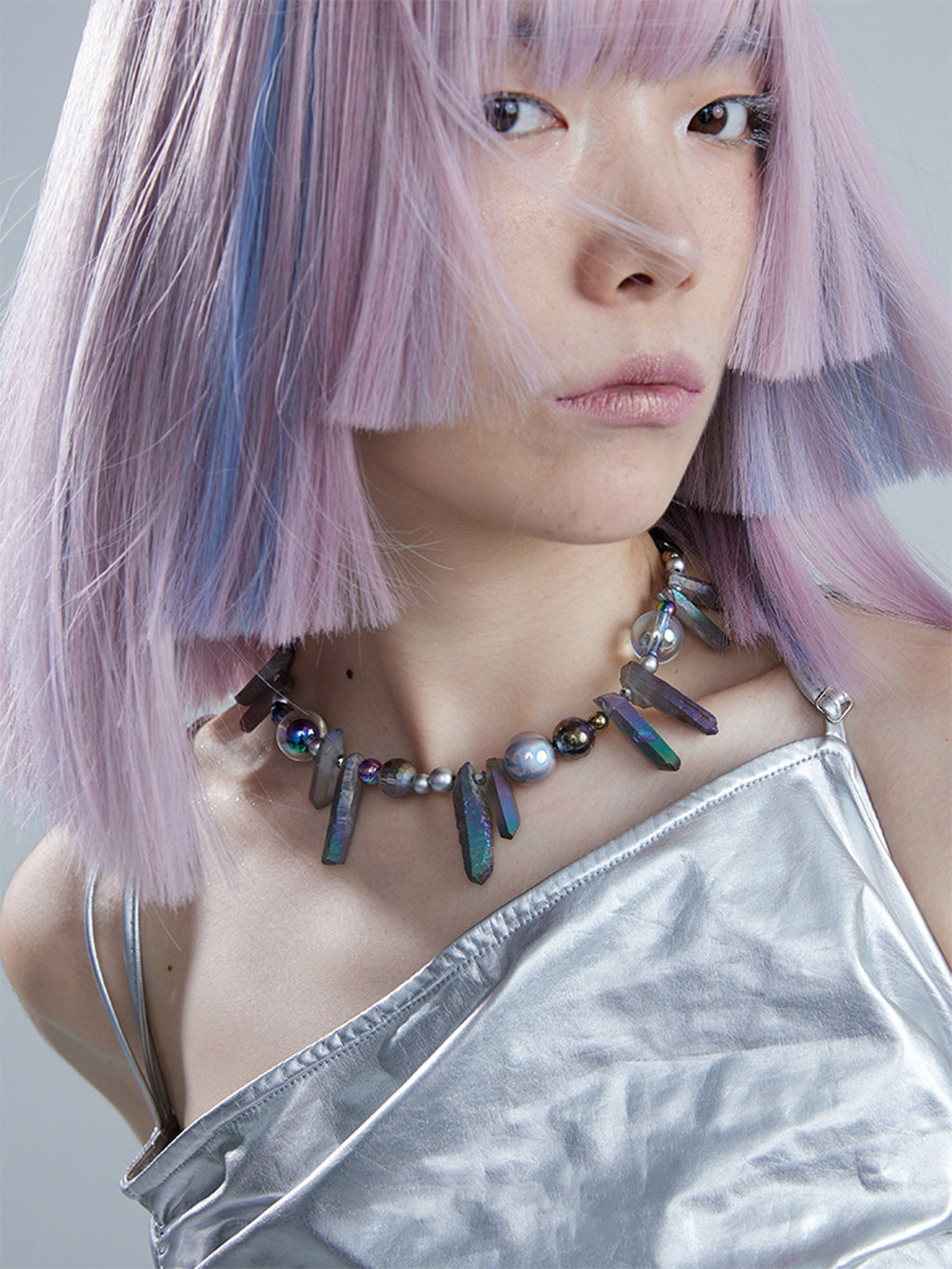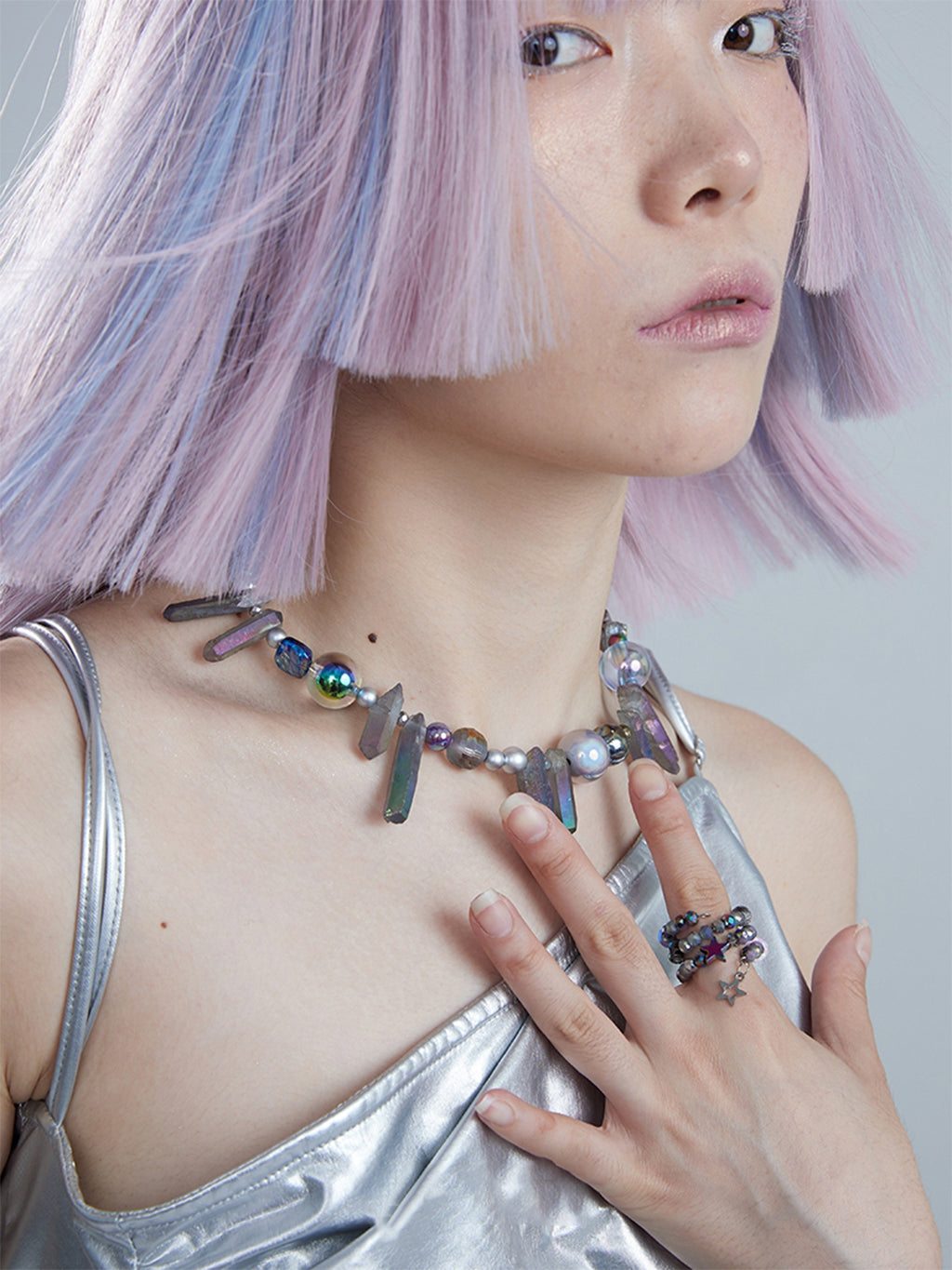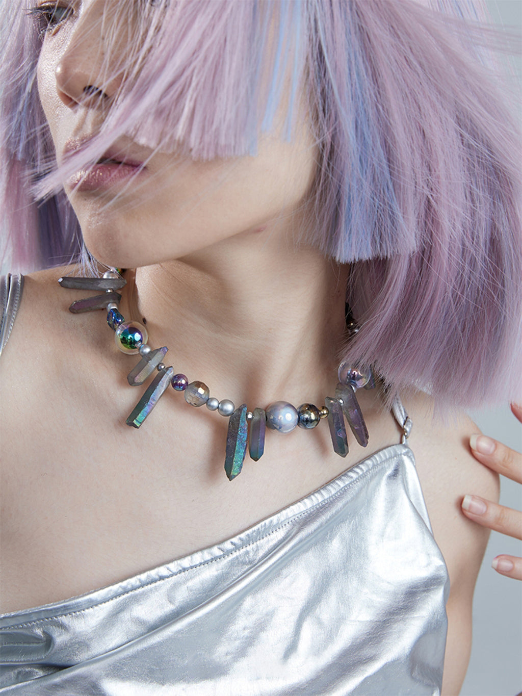 ILLuSoRy | "Dreamscape" Futuristic Plated Crystal Bead Necklace Skip to content