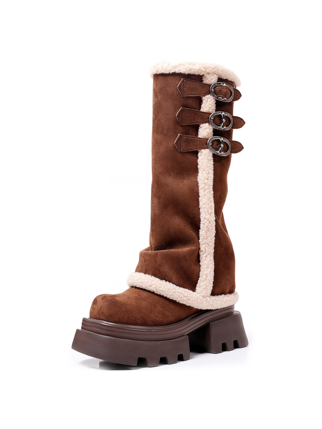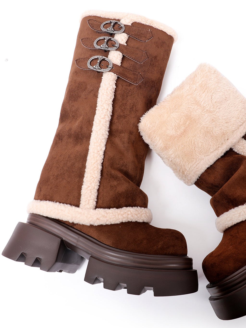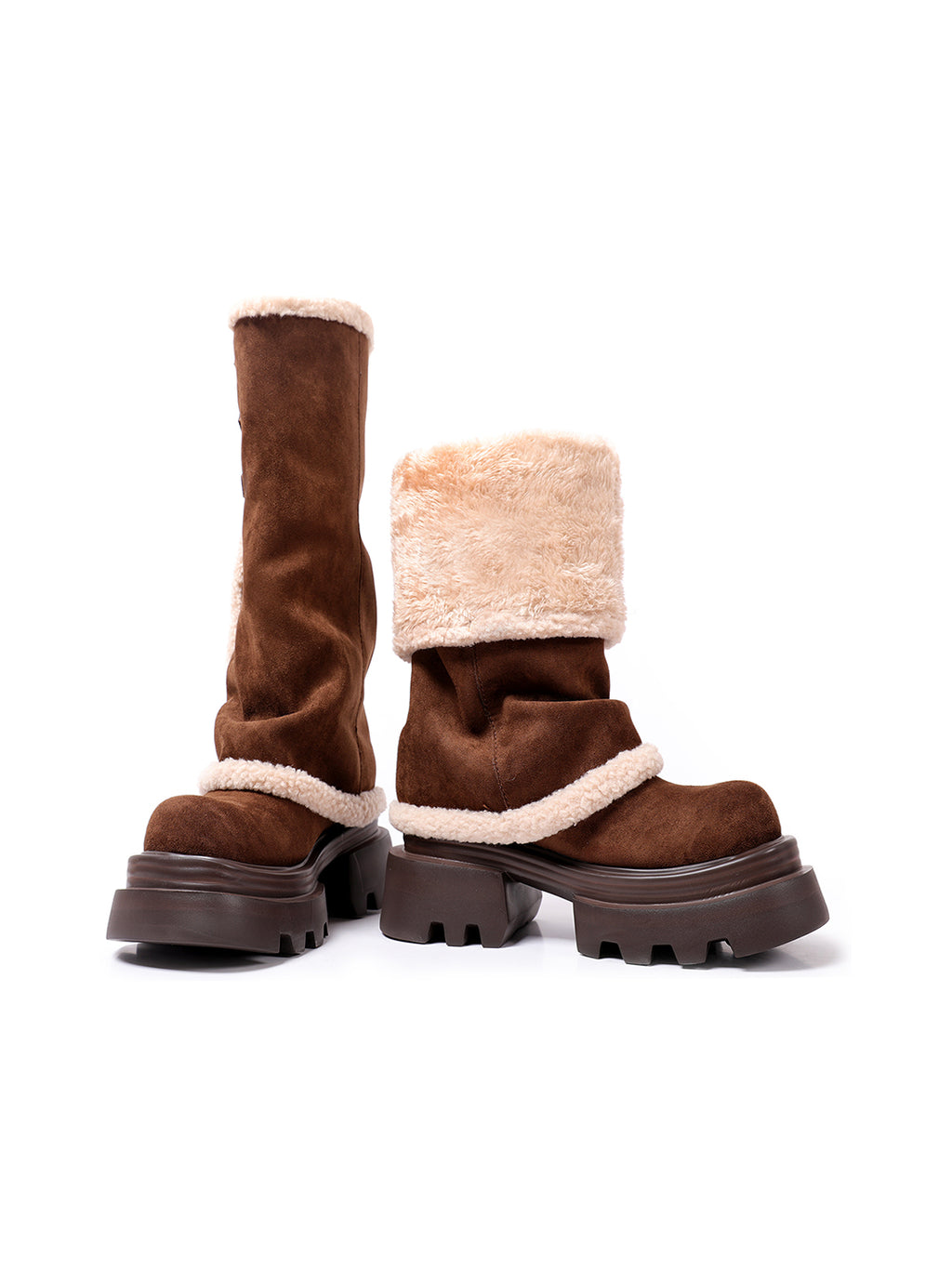 PINJIAHUI | Faux Fur Lined Suede Platform Boots Skip to content
