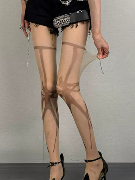 Bokior | Asymmetric Retro Jacquard Sheer Tights