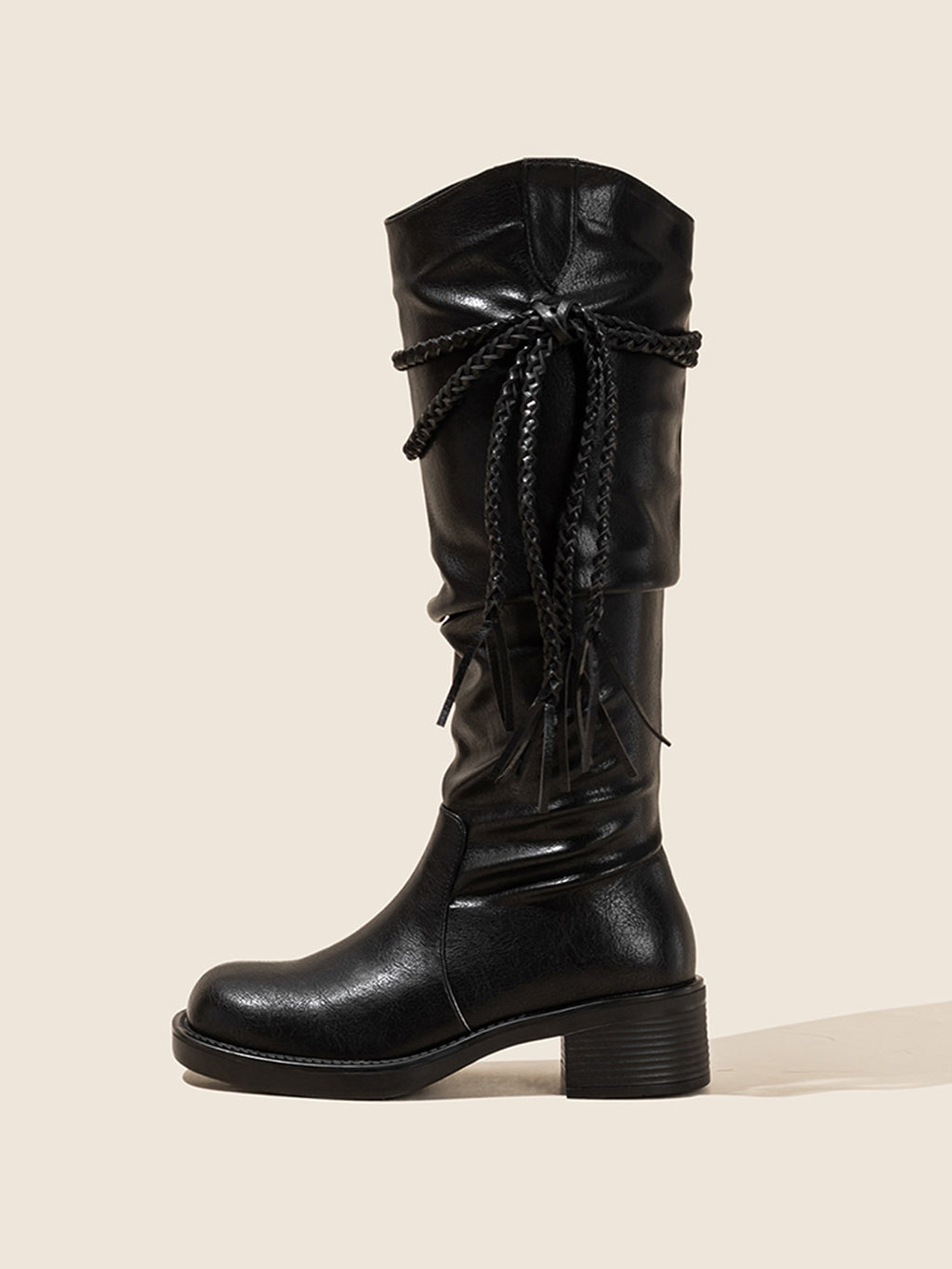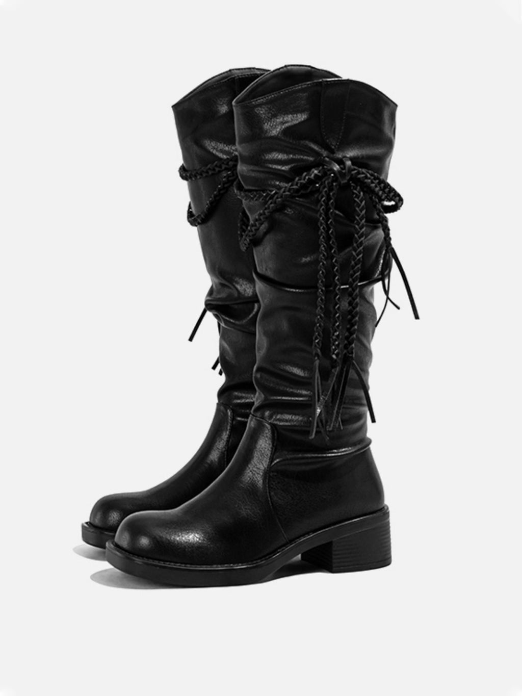 OLDMEOW | Black Over-the-Knee Boots with Tassel Detail Skip to content