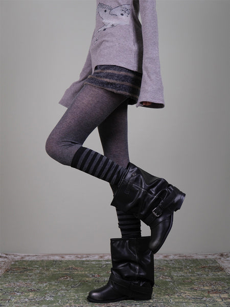 XILING | Dark Gray Tights + Striped Over-the-Kn...