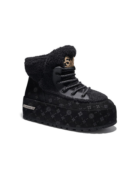 SALAXI | Monogram Design Faux Fur Platform Boot...