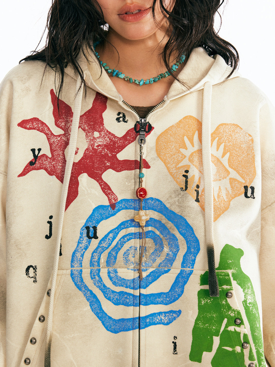 1997 | Distressed Tribal Graphics Zip- Up Hoodie