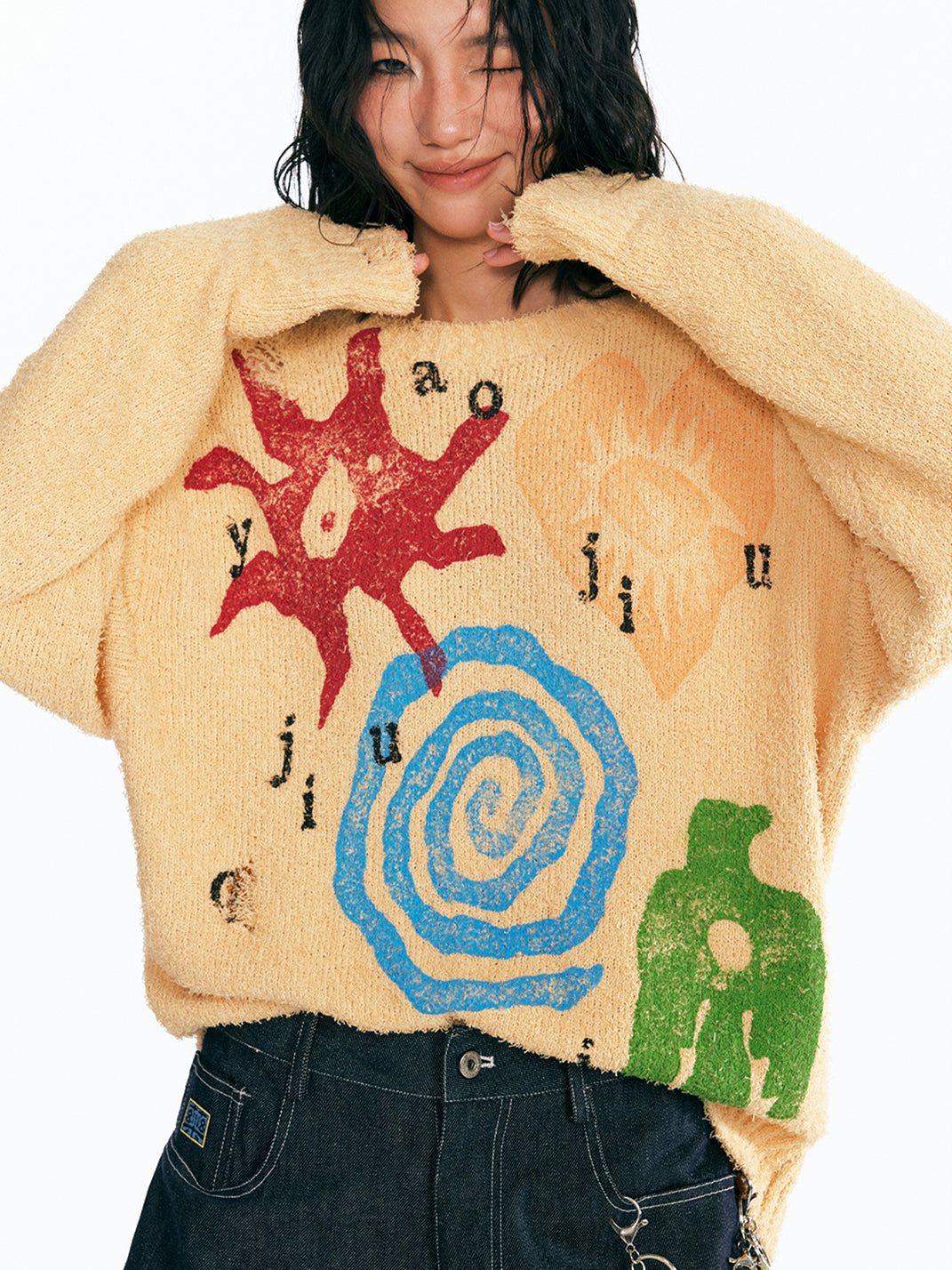 1997 | Graphic Print Knit Crewneck Sweater Skip to content