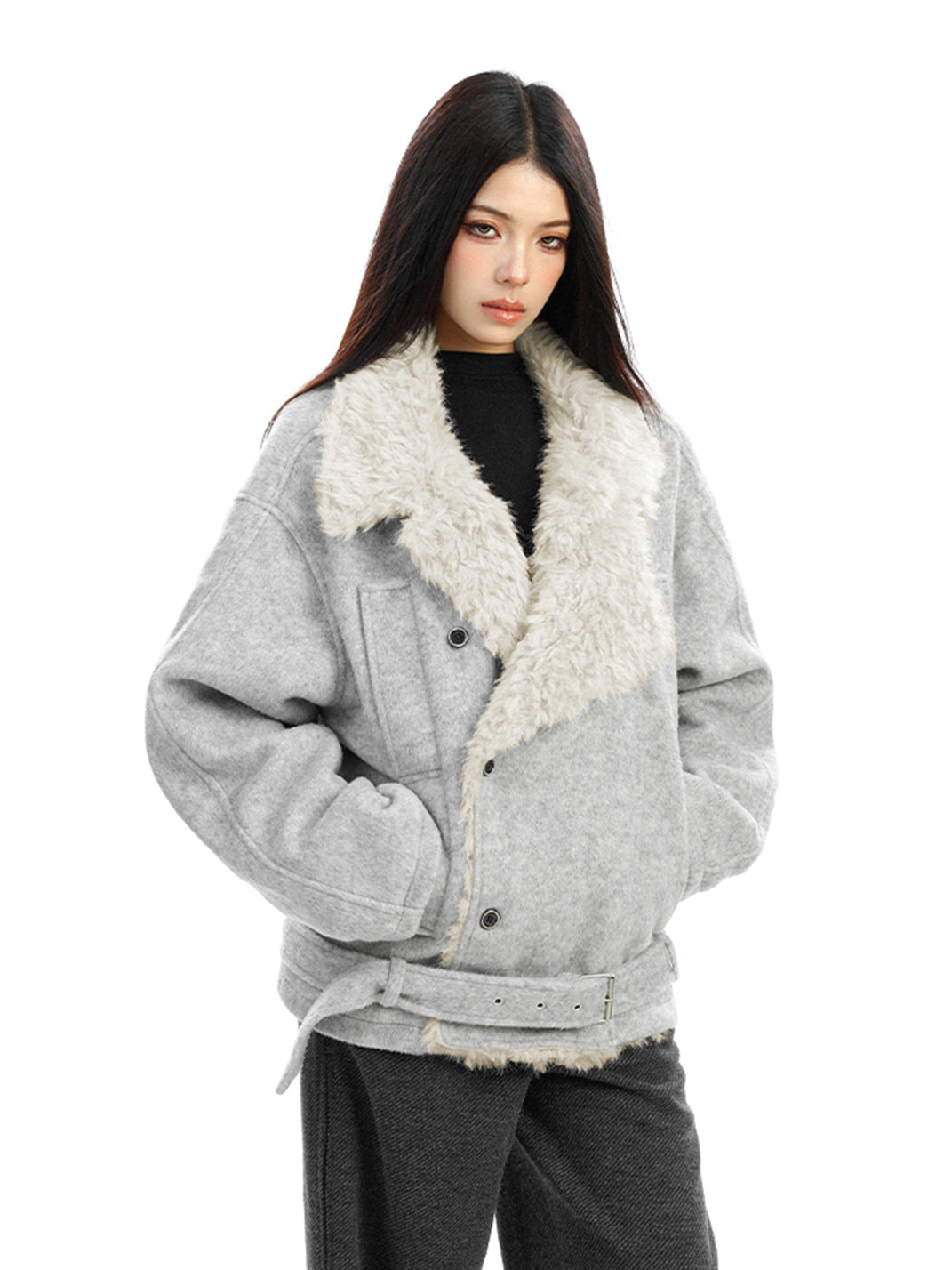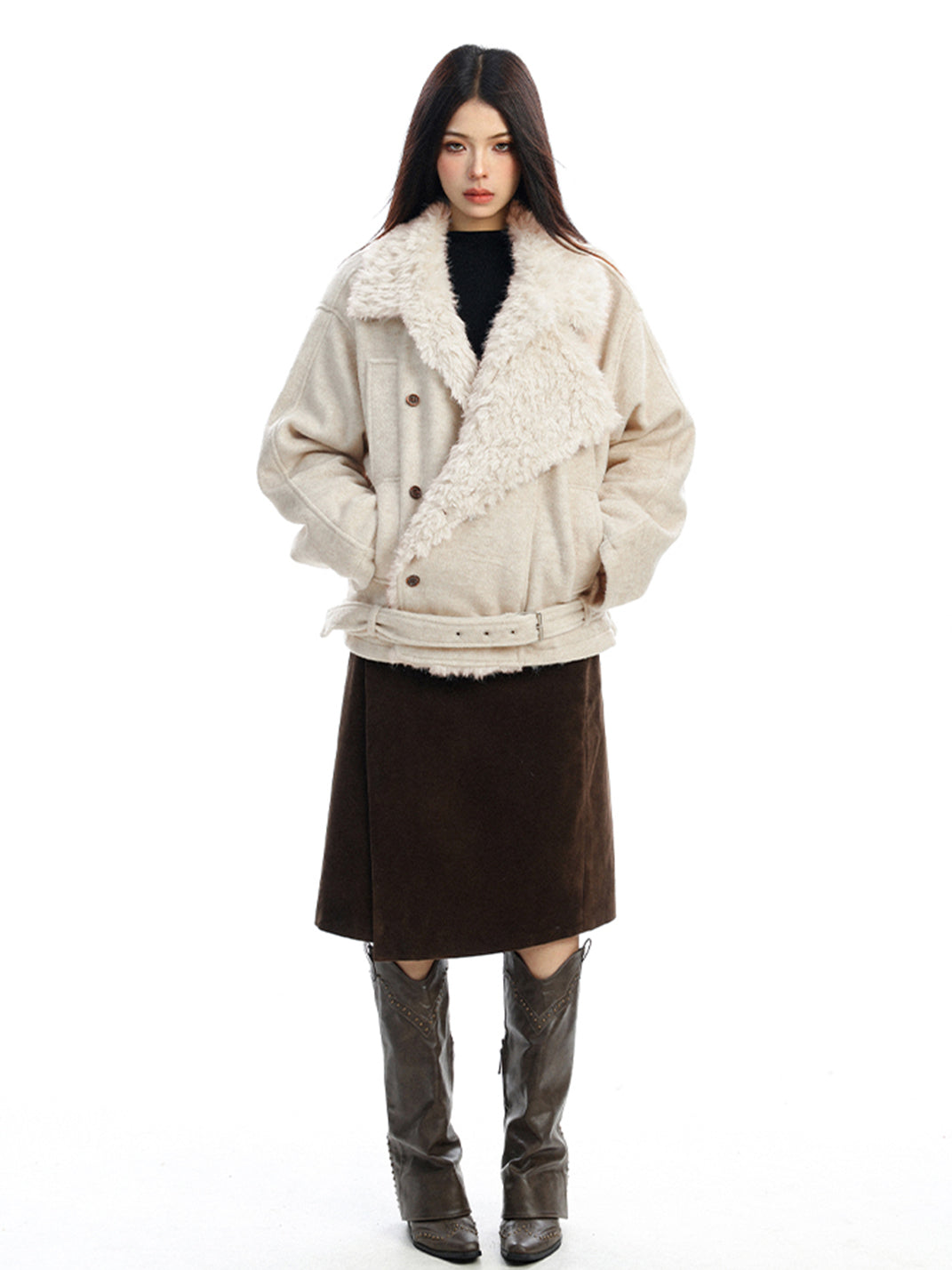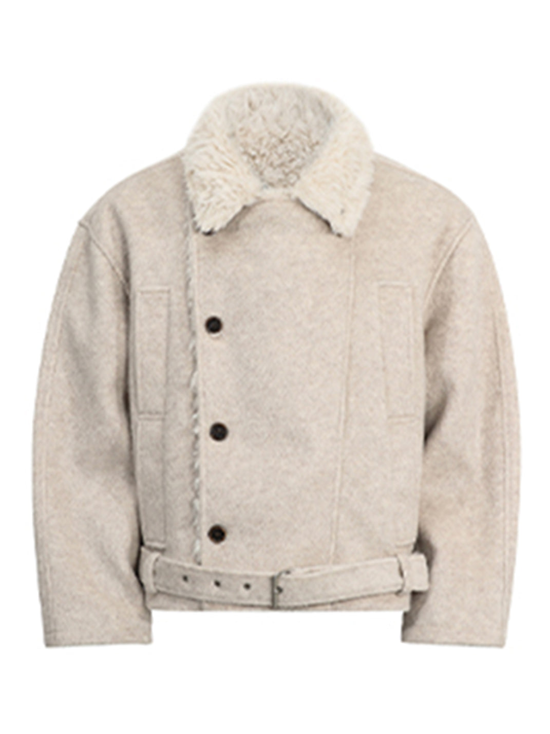 BIGGOLD | Shearling-Lined Belted Suede Jacket